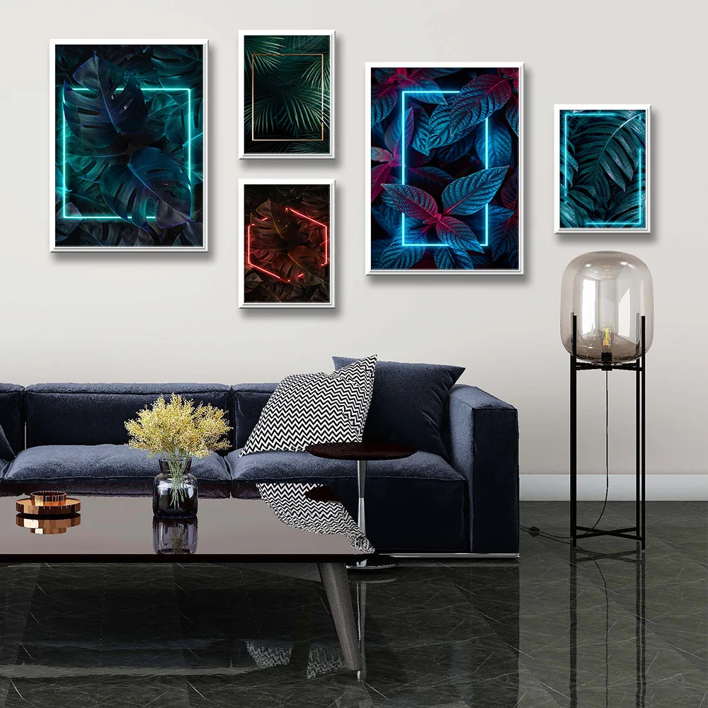 Мультяшные Неоновые Настенные картины с изображением растений для дома, гостиной, украшение для дома, стены