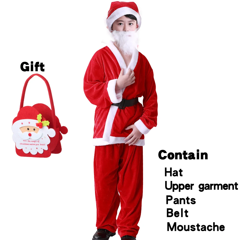 Костюм Санта Клауса, детская шапка, пояс, Подарочная сумка для бороды, милый смешной полиэстеровый материал для косплея, новый стиль, белый и красный