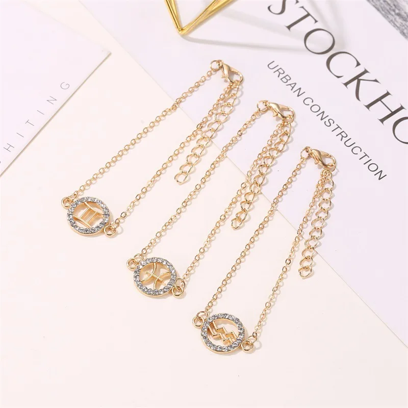 Классический браслет с кристаллами золотого цвета 12 знаков зодиака...