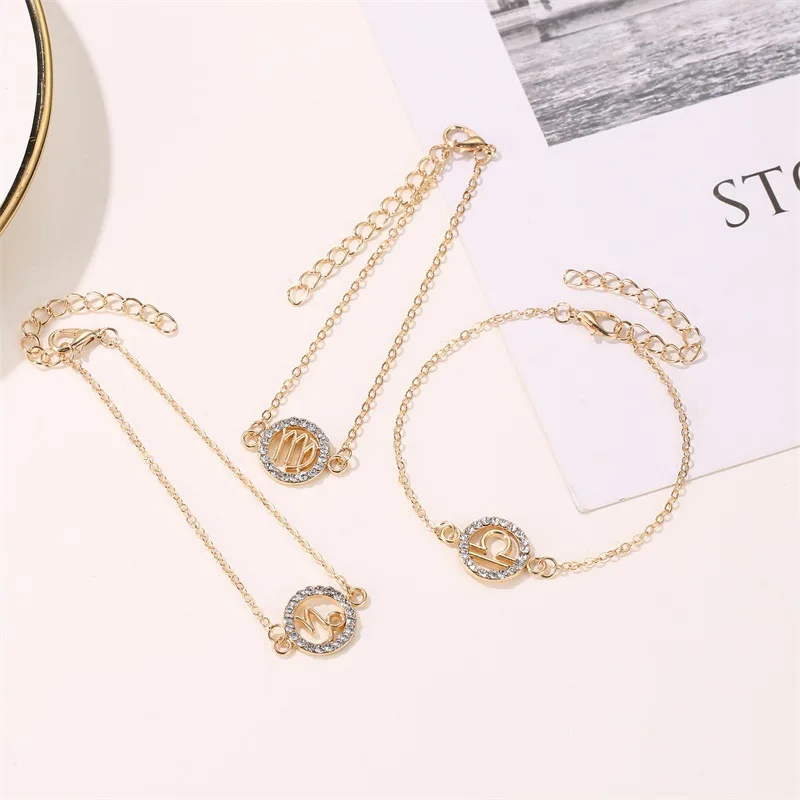 Браслеты со знаком зодиака 12 созвездий, Модный золотой полый брасл...