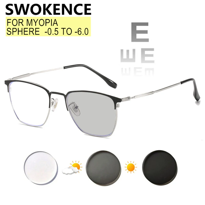 Фотохромный Хамелеон SWOKENCE, для мужчин и женщин, от-0,5 до-6,0, серый или коричневый, с защитой от синего света, для близорукости, F041