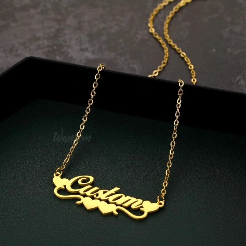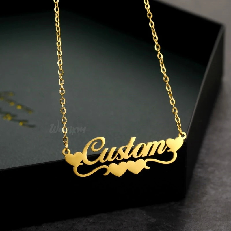 Персонализированные золотые ожерелья из нержавеющей стали с именем для женщин и мужчин, подвески с именной табличкой и сердцем на заказ, ожерелье с кулоном, ювелирные изделия