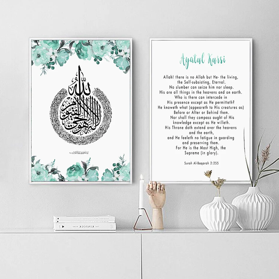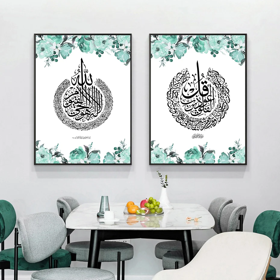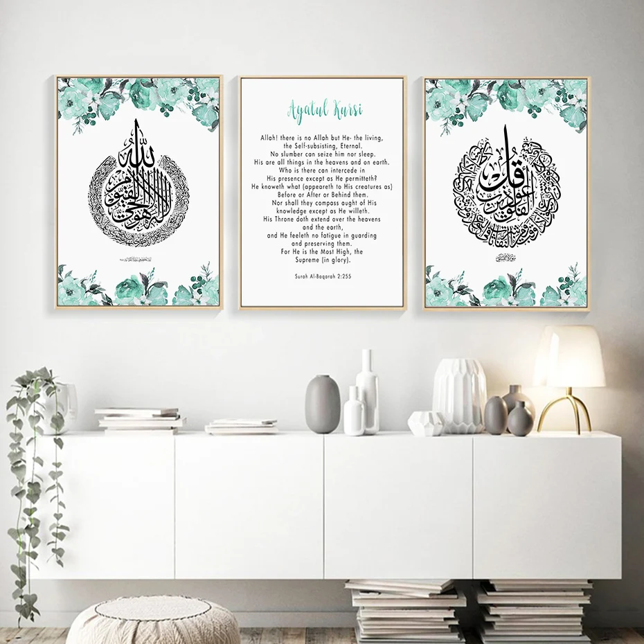 Исламский постер с зелеными пионами и розами, Современная Картина на холсте, Настенная картина, украшение для гостиной и дома