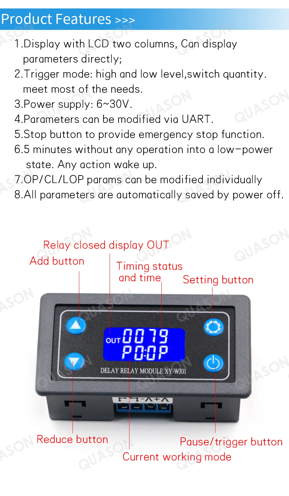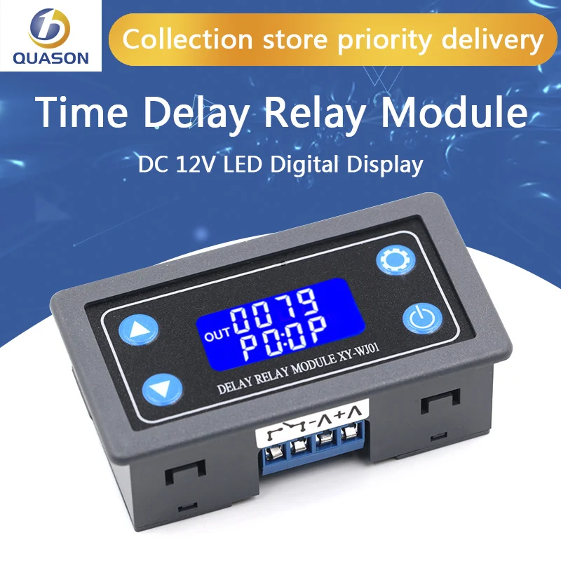 Цифровой светодиодный релейный модуль с задержкой времени, 12 В постоянного тока, Программируемый релейный переключатель с таймером, Функция измерения времени, с чехлом для помещений