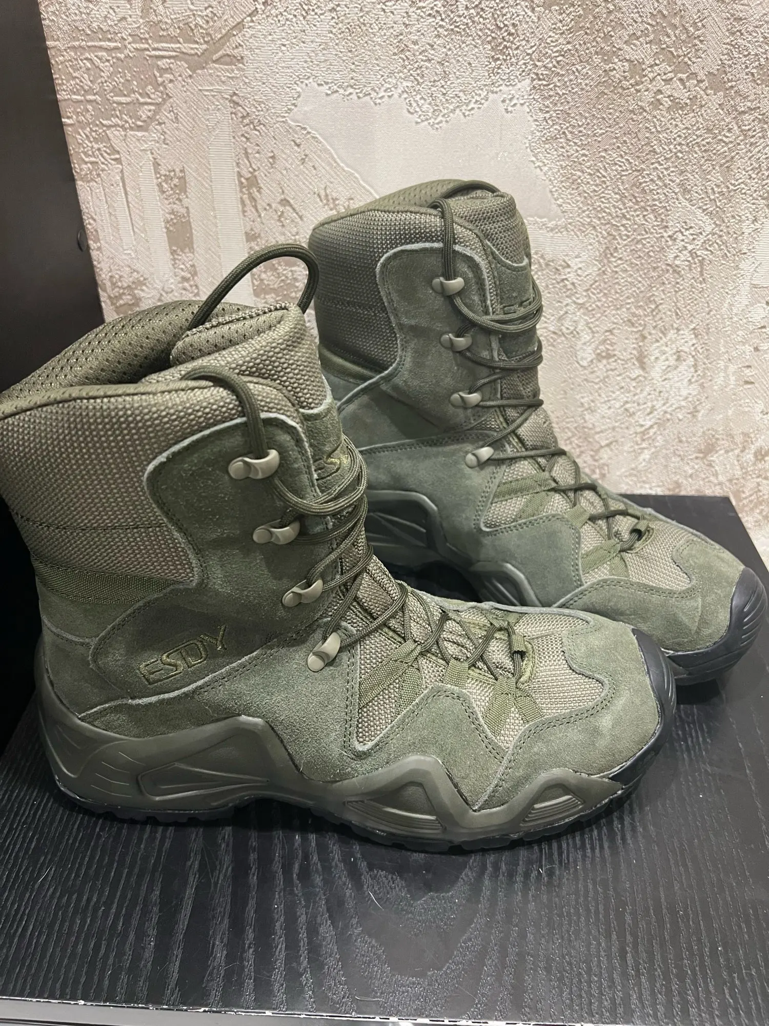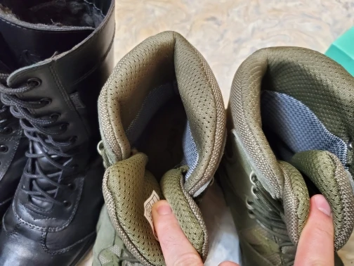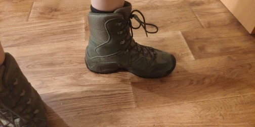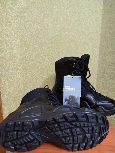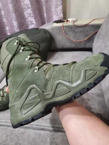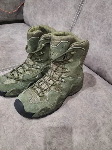 Взял черные ботинки. Очень легкие, достаточно объемные, хорошо проклееннные. Пришли без коробки, на качестве этотне отразилось. Взял на зиму под носок на размер больше, соответсвует описанию, сидят на ноге свободно, можно затянуть и подогнать. Стелька дышащая. шЯзычок плотно пришит высоко, надеють на герметичность, для эффективности обработал водооталкивающим спреем. Закажу еще зеленые со средним берцем.