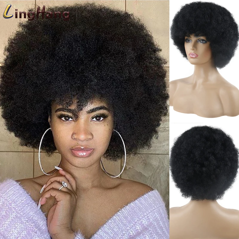 LINGHANG короткие волосы афро кудрявые вьющиеся парики с челкой для...