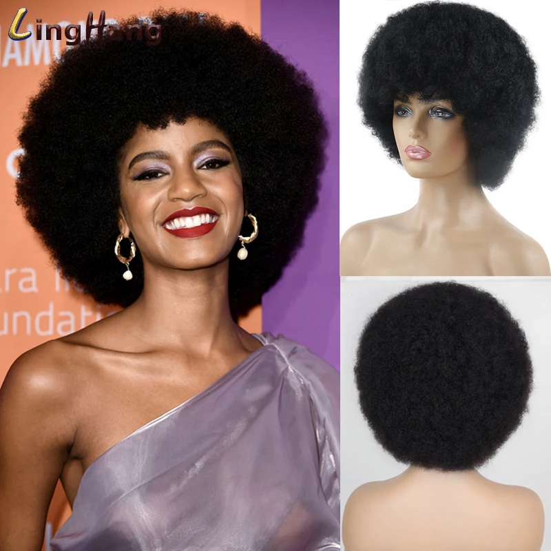 Женские парики из коротких пушистых волос LINGHANG, черные парики из кудрявых вьющихся синтетических волос, вечерние парики для костюмированной вечеринки