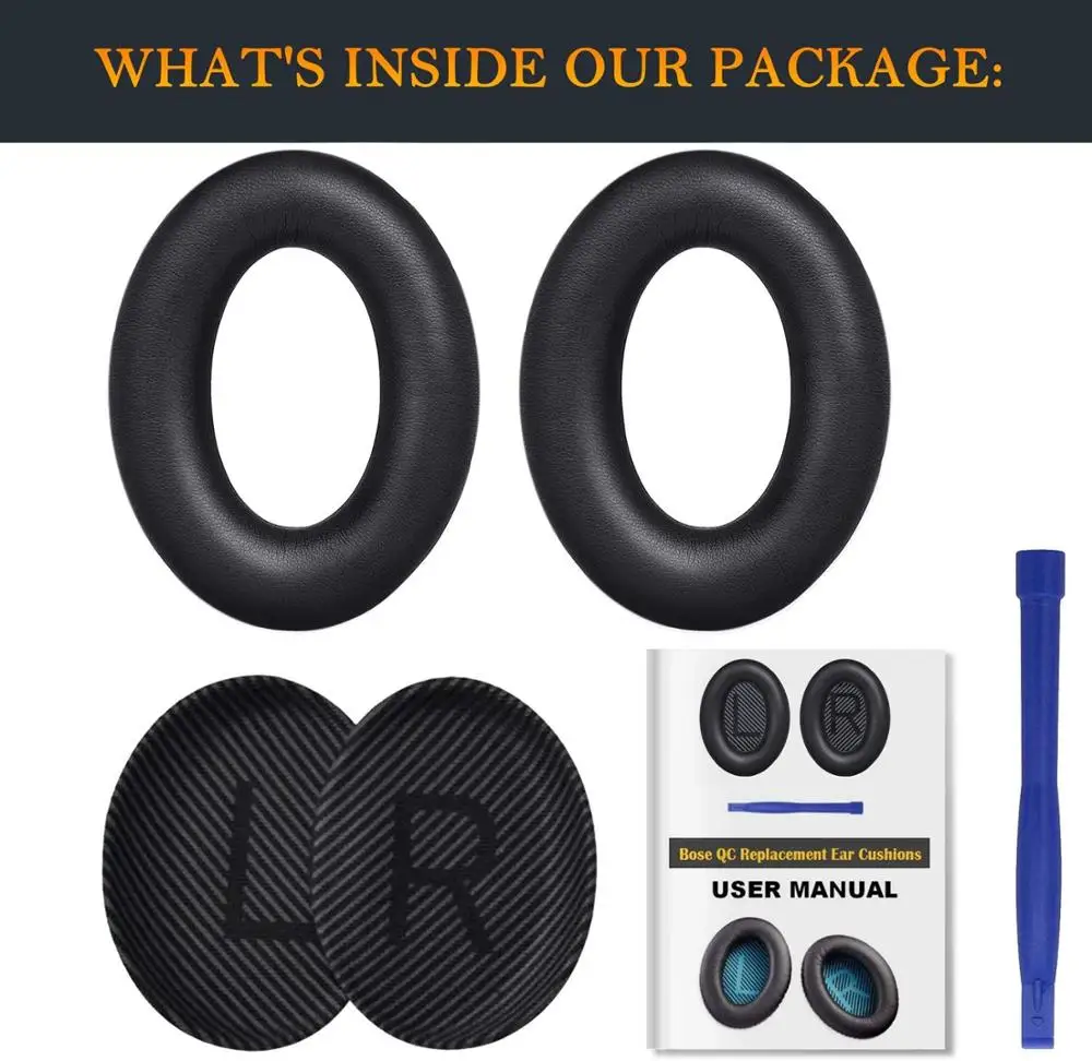 . Совместимость: идеально подходят только для накладных наушников Bose Calm Comfort 35 (QC35) и QuietComfort 35II (QC35 II)!. Безупречная установка: помимо амбушюров, вы получите пластиковый Стик, что делает всю установку легкой и быстрой (обычно 5 минут).. Наша изобретательность: использование пены с эффектом памяти высокой плотности и высококачественной Протеиновой кожи, блестящее вокруг ушей, обеспечивающее отличную шумоизоляцию и усиленные басы..