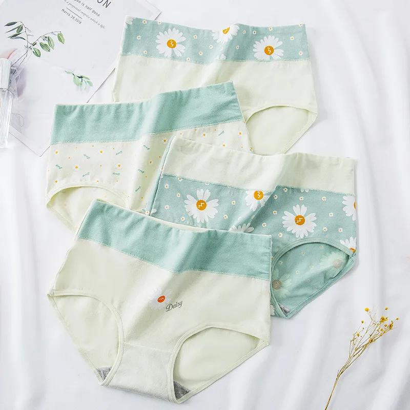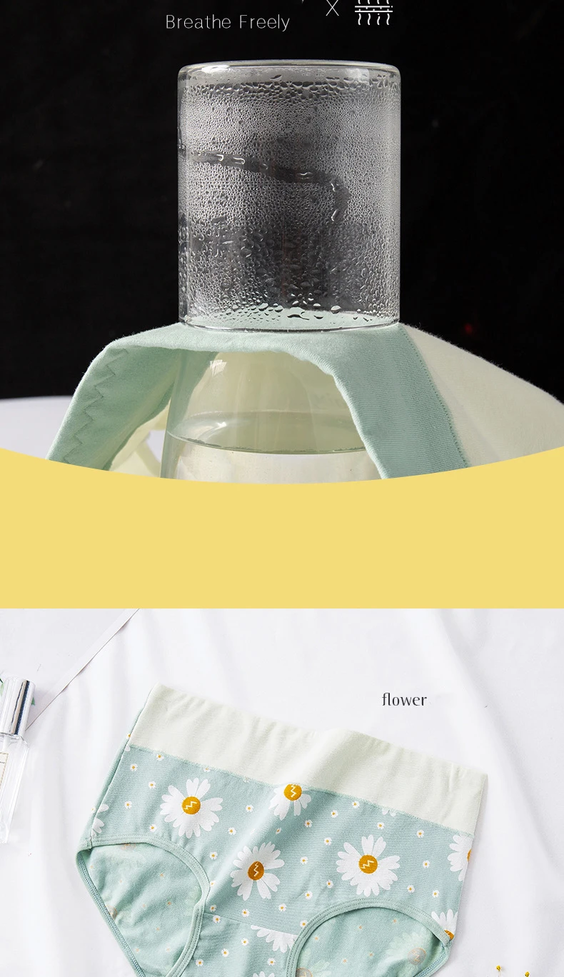 С высокой посадкой Хлопковые женские трусики Милая ромашка узор, Детские трусы, трусы для женщин, дышащие, комфортные, нижнее бельё для девочек приятная на ощупь нижнее белье трусики для женщин