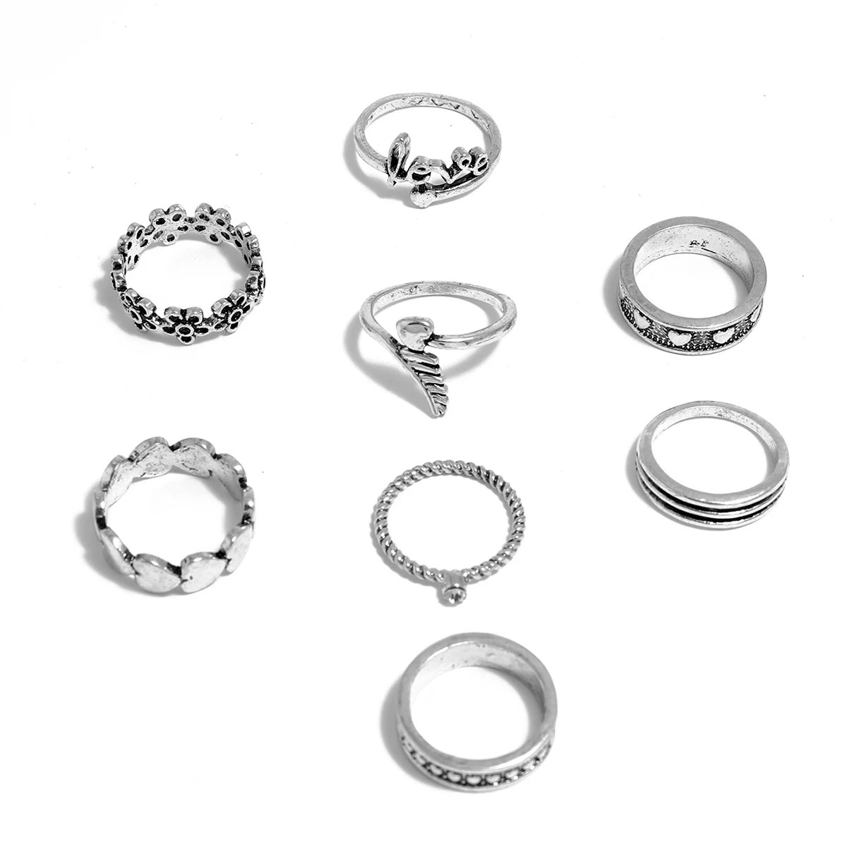 Sindlan 8 шт. геометрической формы, в стиле бохо серебряного цвета кольца в форме сердца для женщин амулет полый цветок Письмо Любовь Женская старая мода ювелирные изделия
