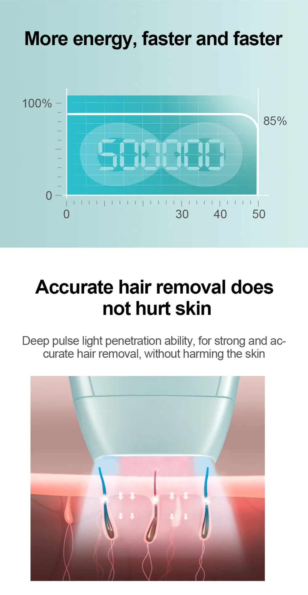 [Самый быстрый и экономичный]:Вспышка с умным автоматическим режимом вспышки позволяет легко обработать голени за 4 минуты, подмышек за 2 минуты и 1 минуту за волосы бикини.