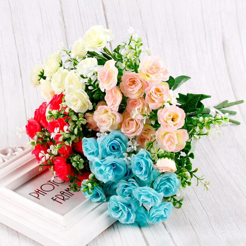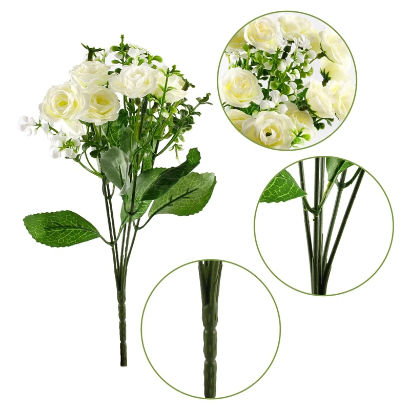 QIFU, 30 см, искусственная Роза, букет цветов, 5 больших головок, 4 маленьких бутона, искусственная Роза для невесты, свадьбы
