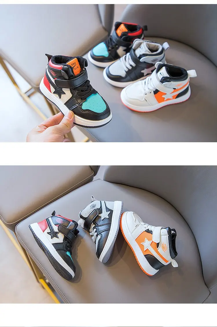 Детские модные высокие кроссовки для мальчиков и девочек, дышащая С...