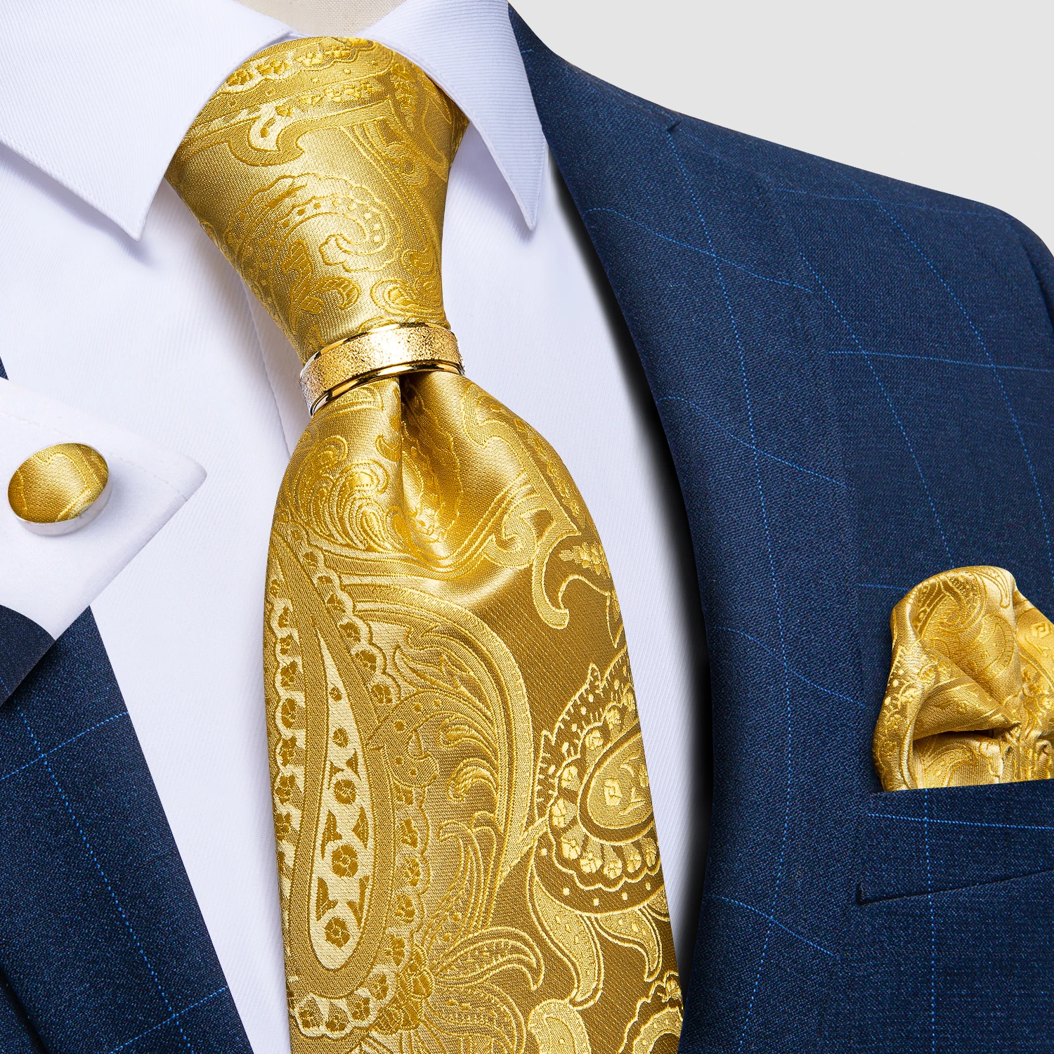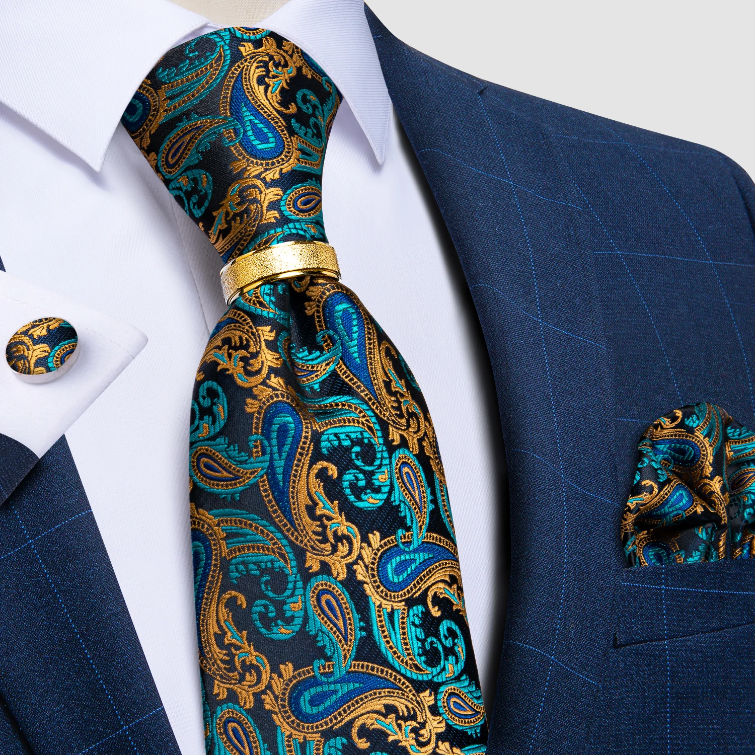 DiBanGu дизайнерский мужской галстук с зеленым узором Пейсли Полосатый Свадебный галстук для мужчин кольцо Hanky запонки шелковый галстук Набор для деловых вечеринок