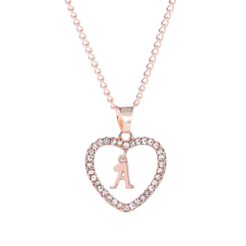 Ожерелье женское с кулоном в виде сердца, 26 букв, с цирконом