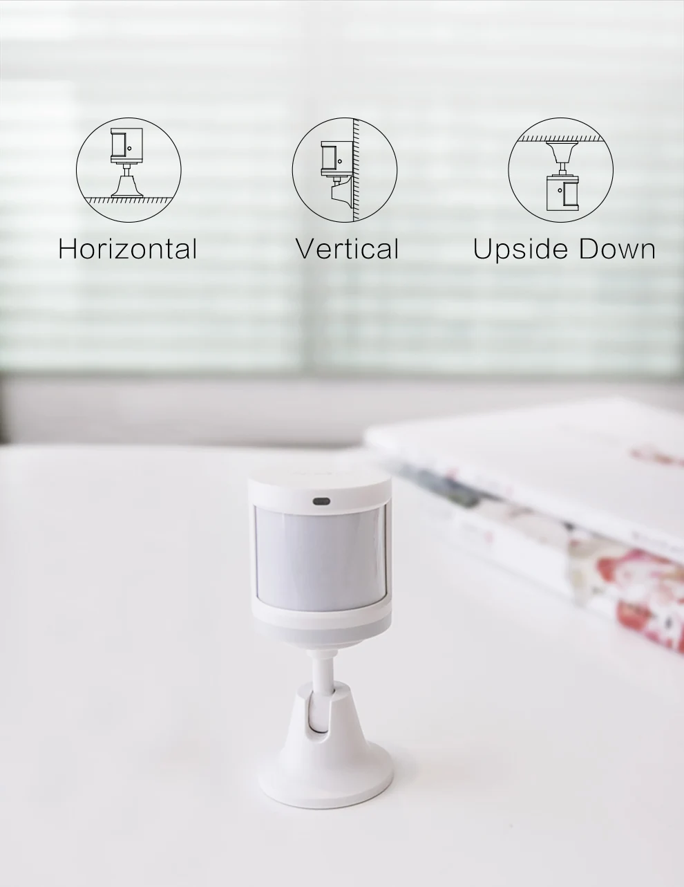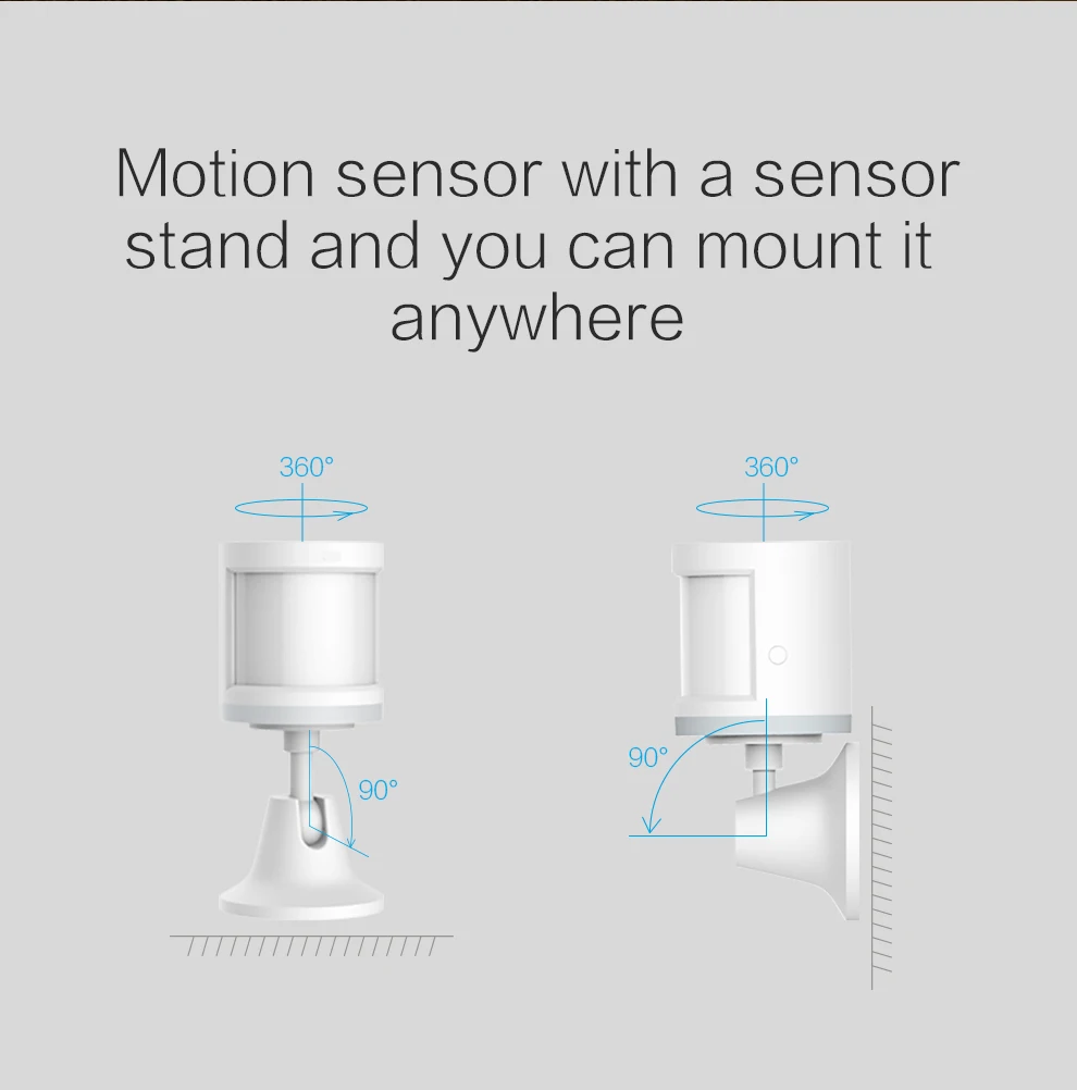 Вы можете поворачивать датчик движения на 180 ° и регулировать угол обнаружения с помощью подставки и наклейки датчика