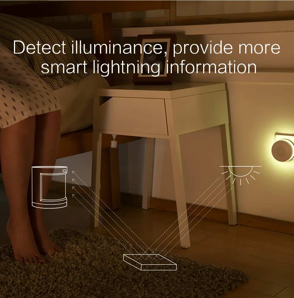Он определяет яркость помещения и предоставляет больше информации для smat освещения. Например, Если кто-то проходит мимо, а внутренний свет слабый, ночсветильник включается автоматически.