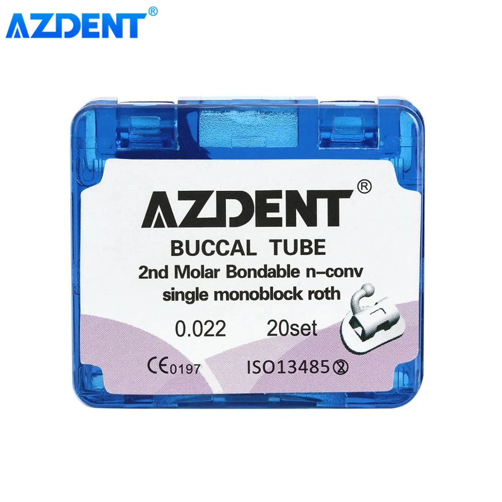 Стоматологическая Ортодонтическая зубная букальная трубка AZDENT 20 комплектов, семейная 2-я молярная обрабатываемая Одиночная нетрансформируемая букальная трубка MBT Roth 0,022 0,018