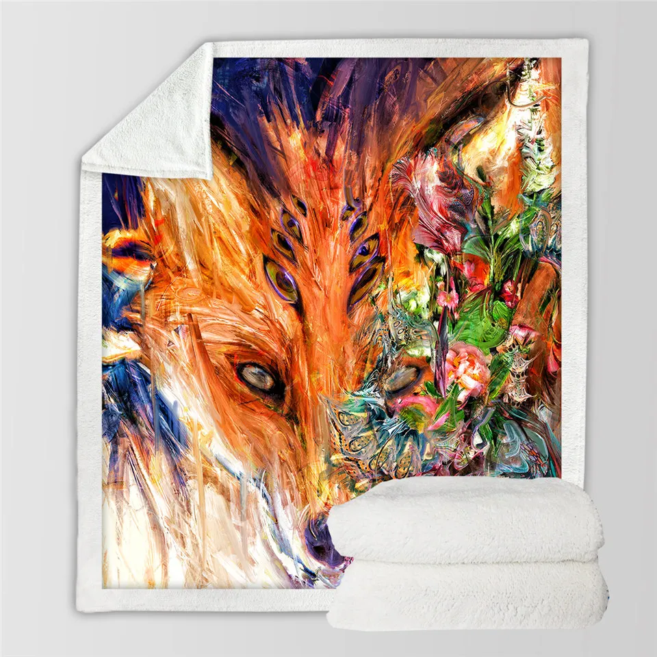 Детское фланелевое одеяло, цветное покрывало с 3D принтом лисы, сох...