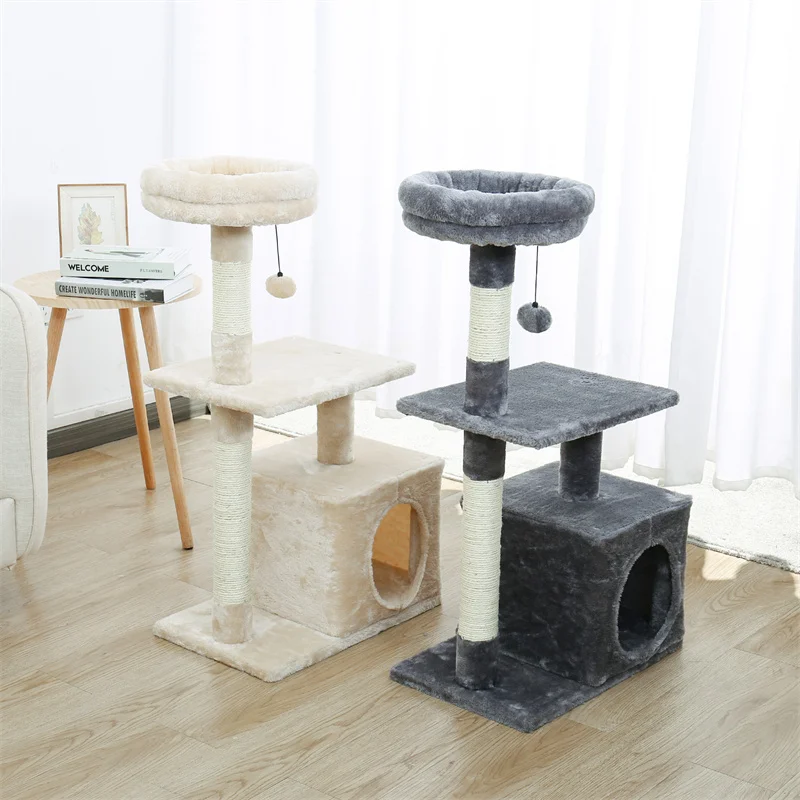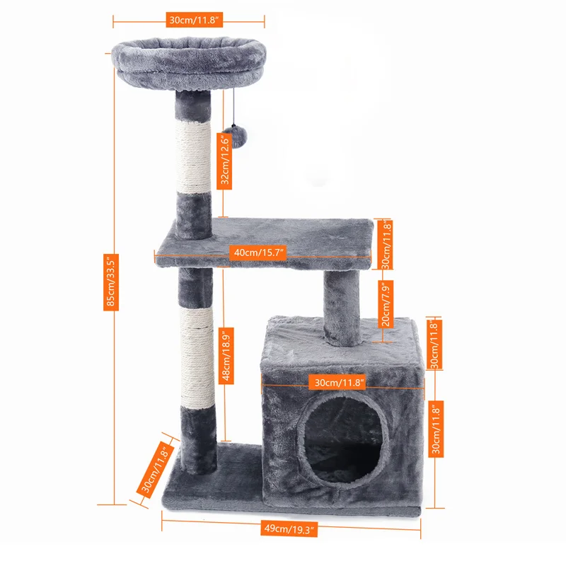 Центр активности кошек-В наличии 1 милый домик для кошек, 1 просторный Перш, 1 гамак, 6Когтеточки покрыты серым сизалем, 4 столба покрыты толстым войлокомТкань, 1 подвесная сизальная веревка... Предлагаем котам множество вариантов acticity. 4.Дизайн полов отвечает природе прыжков кошки. Они могут прыгать, естьОтдыхайте или играйте с друзьями.