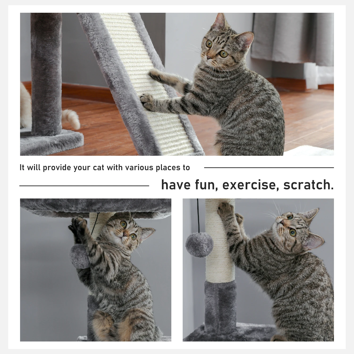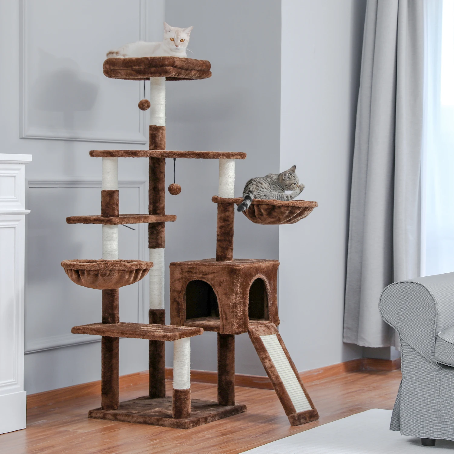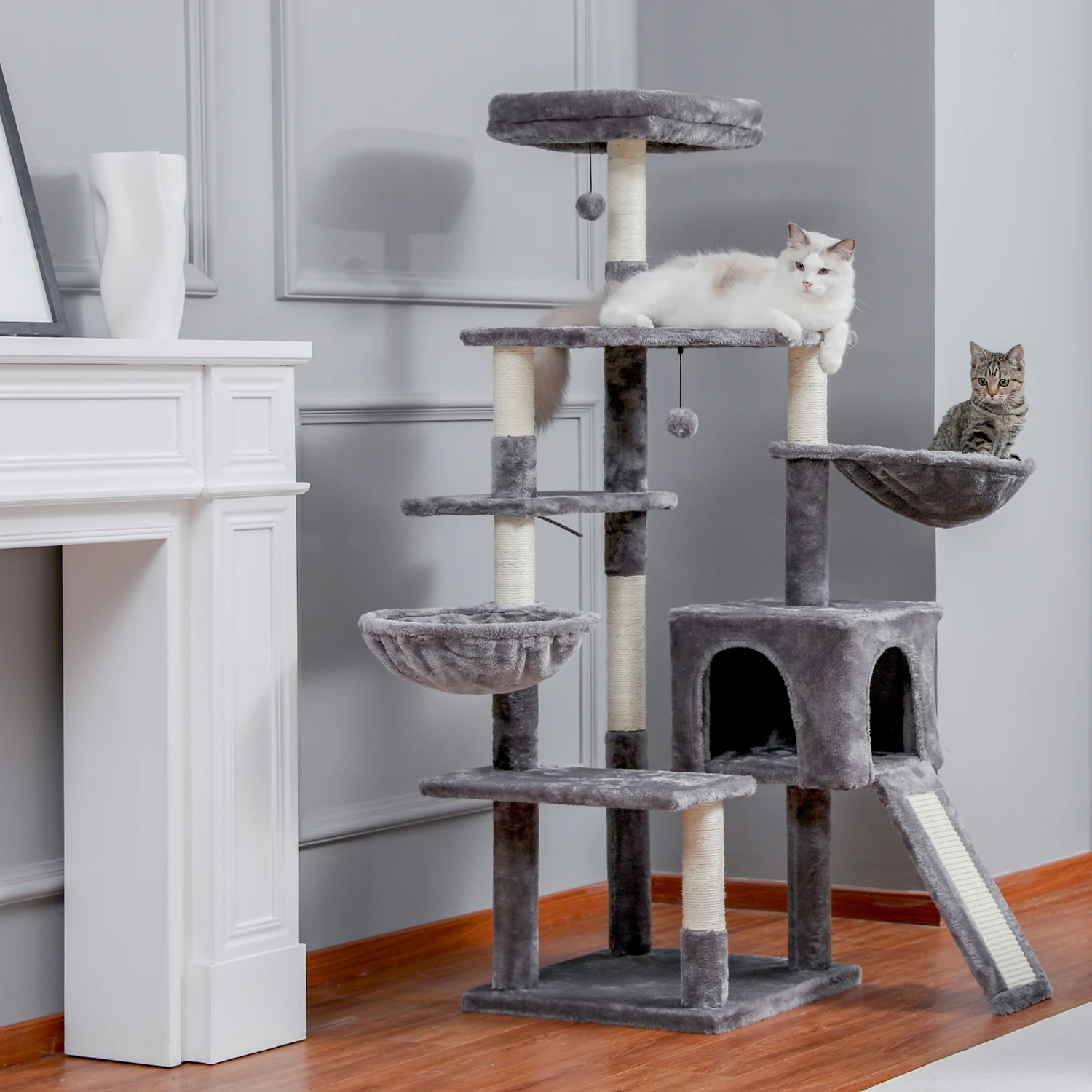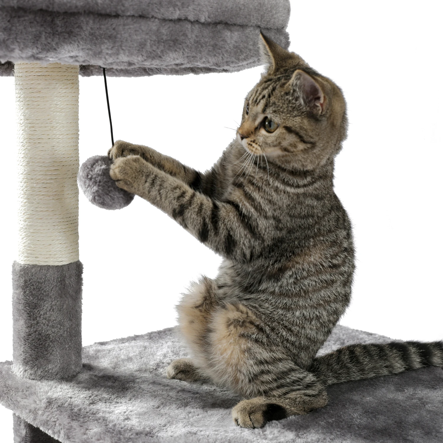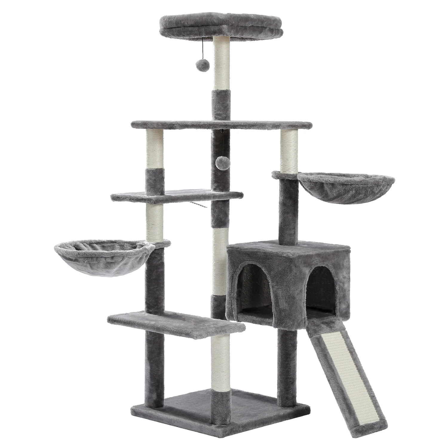 Популярные многоуровневые и роскошные кошачьи башни 50 дюймов с 2 просторными крышками, висячими шариками и рампой