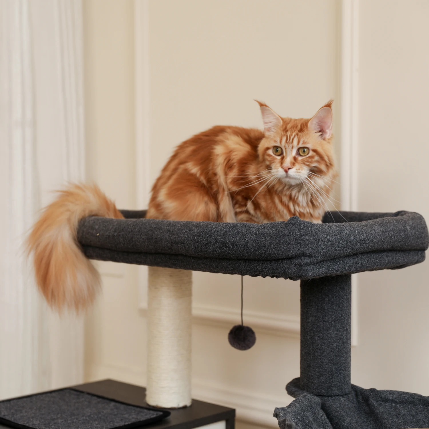 Роскошный стиль-Это серое кошачье дерево, уникальное и роскошное, хорошо соответствует стилюСовременный дом. Идеально подходит для использования во все сезоны. Не только райДля кошек, но и красивое украшение дома.