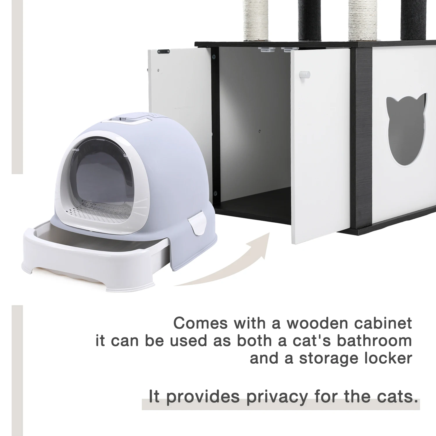 1. Поставляется с деревянным шкафом, он может использоваться как ванная комната кошки и шкафчик для хранения. Он обеспечивает конфиденциальность для кошек.