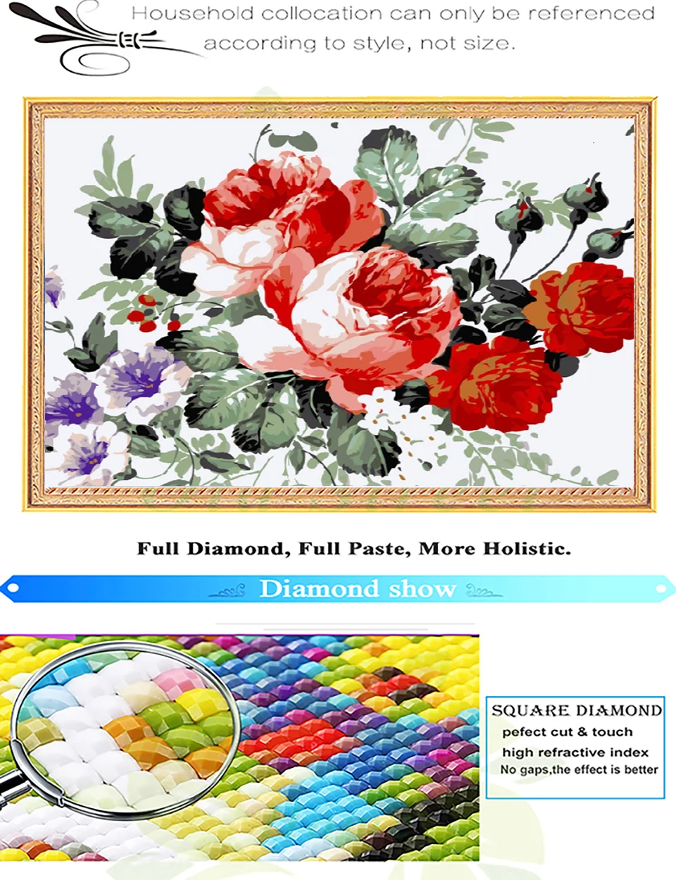 Алмазная 5d-картина цветы, картина с полными квадратнымигальками, к...