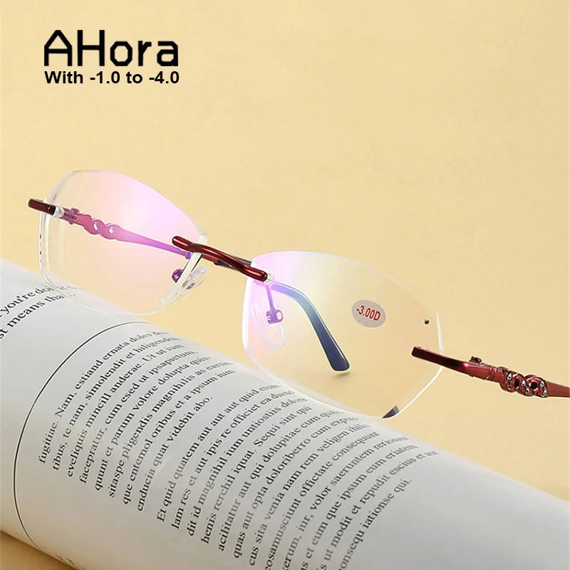 Женская оправа для очков Ahora, без оправы, с защитой от сисветильник света, для близорукости, очки для близоруких диоптрии-1,0-1,5-2,0-2,5-3,0-3,5-4,0