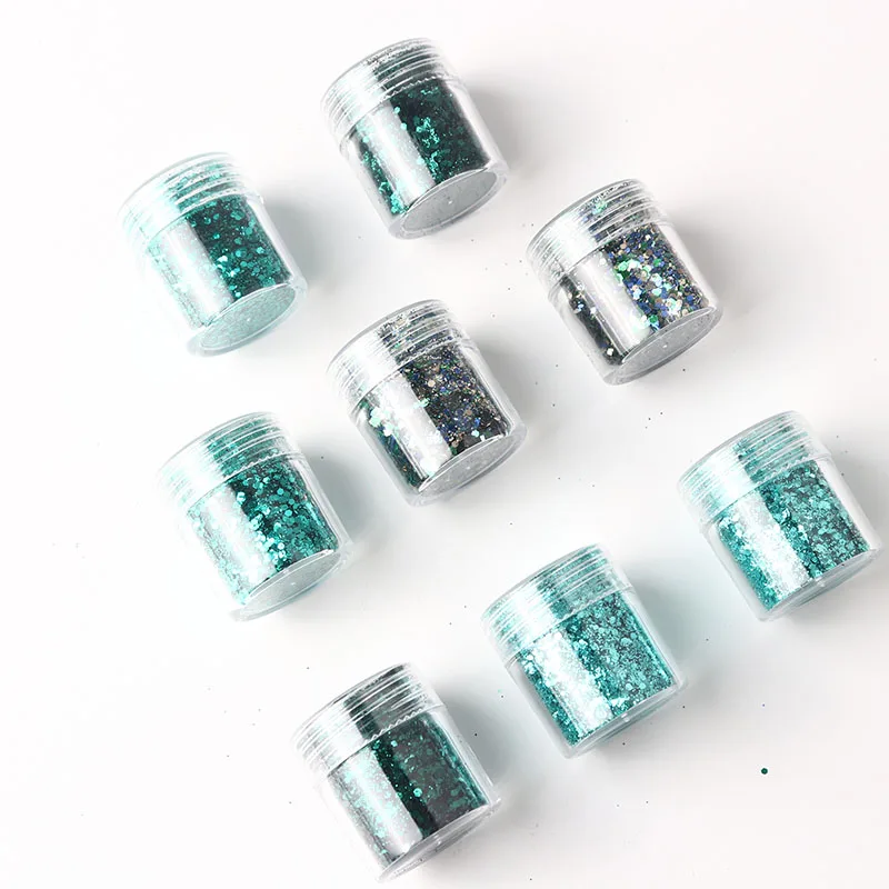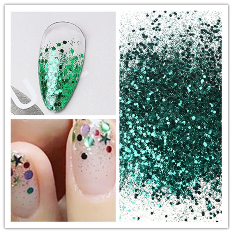 Объемные голографические Блестки для ногтей, 1 банка, порошок неонового пигмента глубоководных зеленых серий, 10 мл