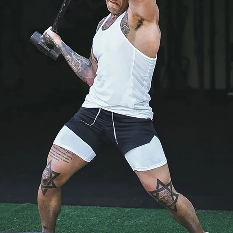 Мужские тренировочные шорты из двух частей в одном леггинсы и спорт...