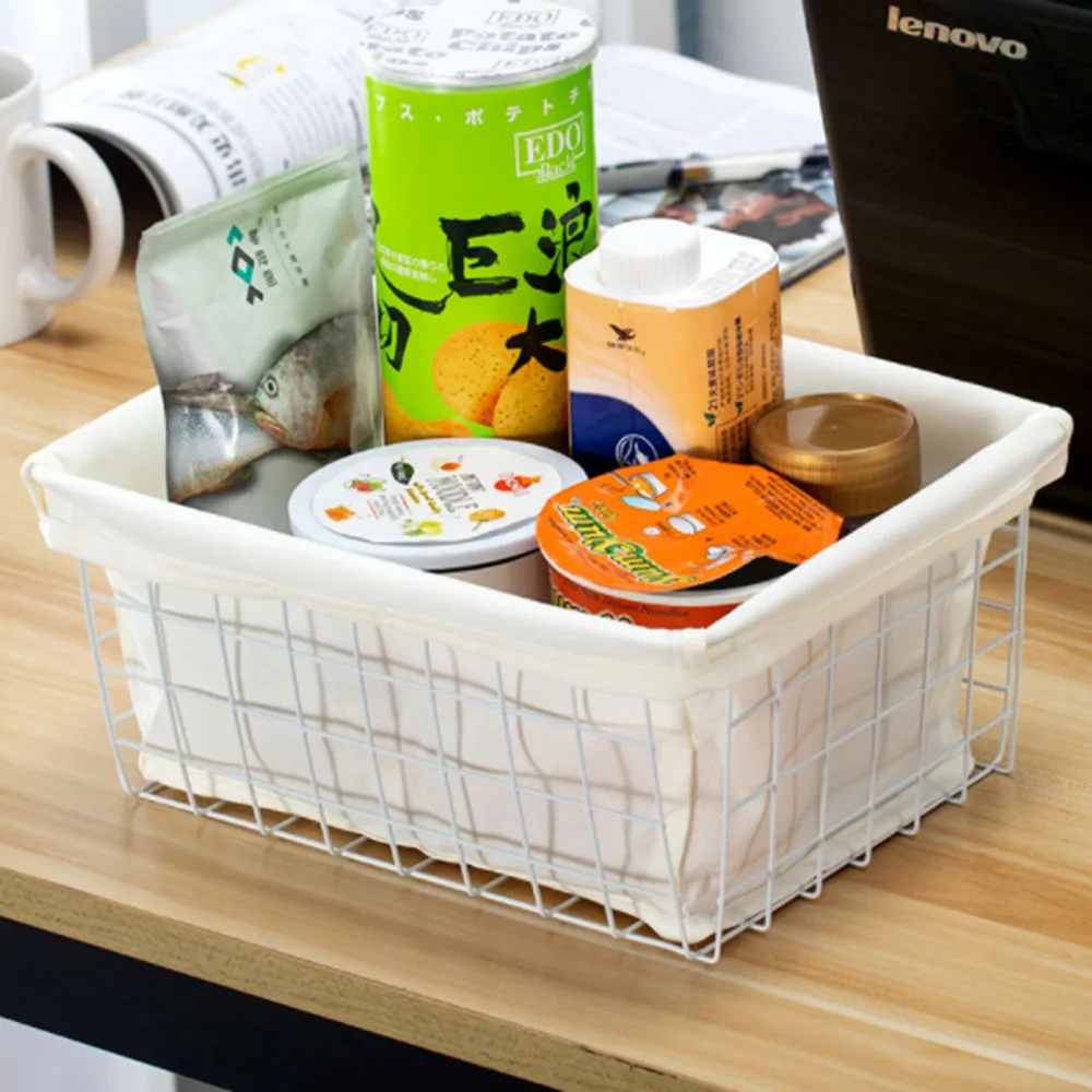 Железная подставка с тканевым ящиком для хранения пищевых продуктов, корзина для книг, держатель для ванной, кухни, шкафов, прачечной, гаража