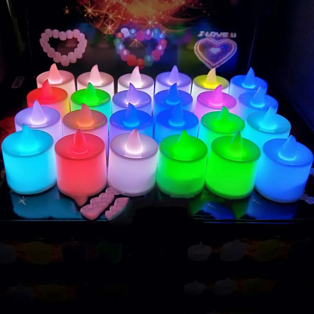 24 шт. электронный светодиодный светильник в форме свечи, реквизит для украшения, красочный Быстрый мигающий автоматический изменяющий цвет, креативный день рождения