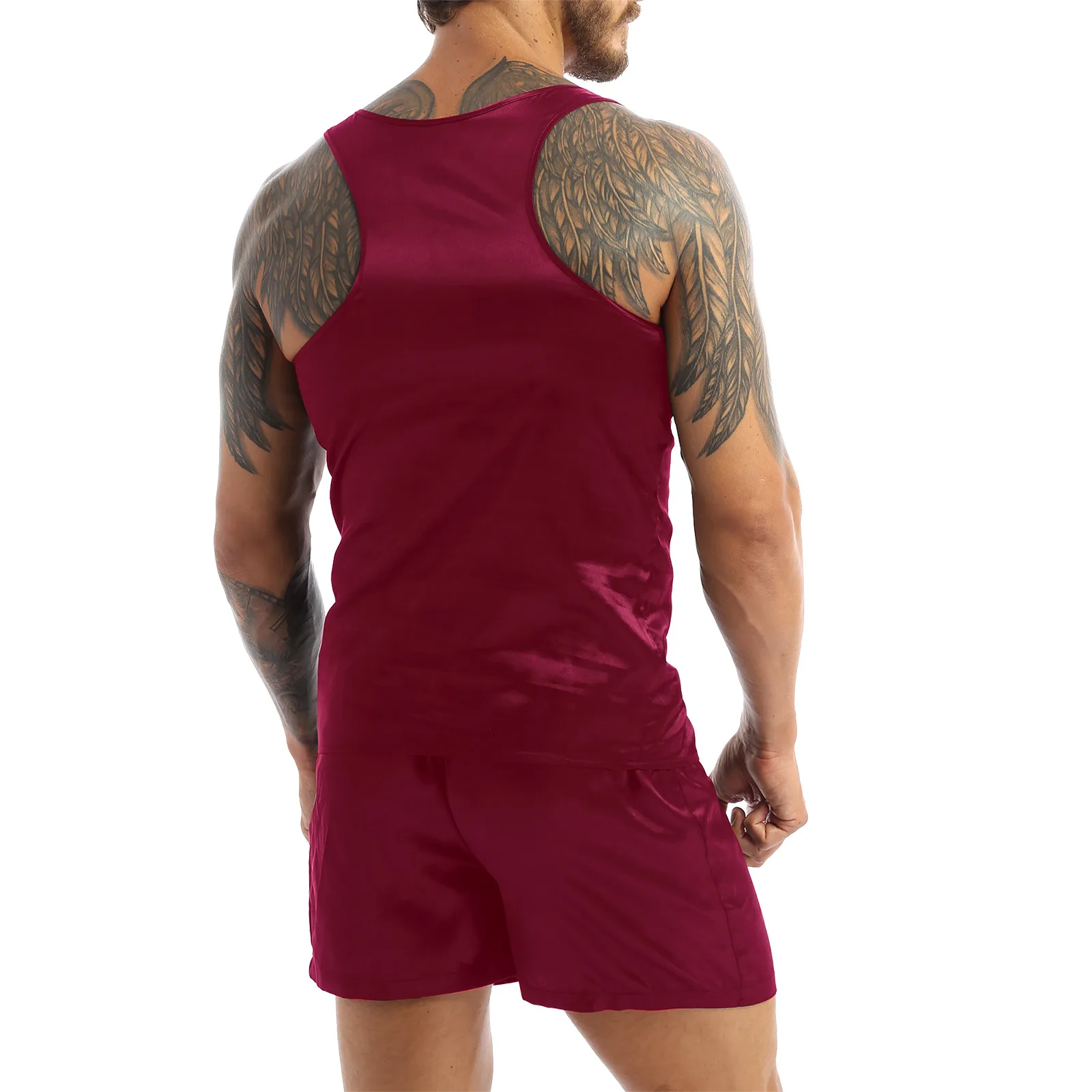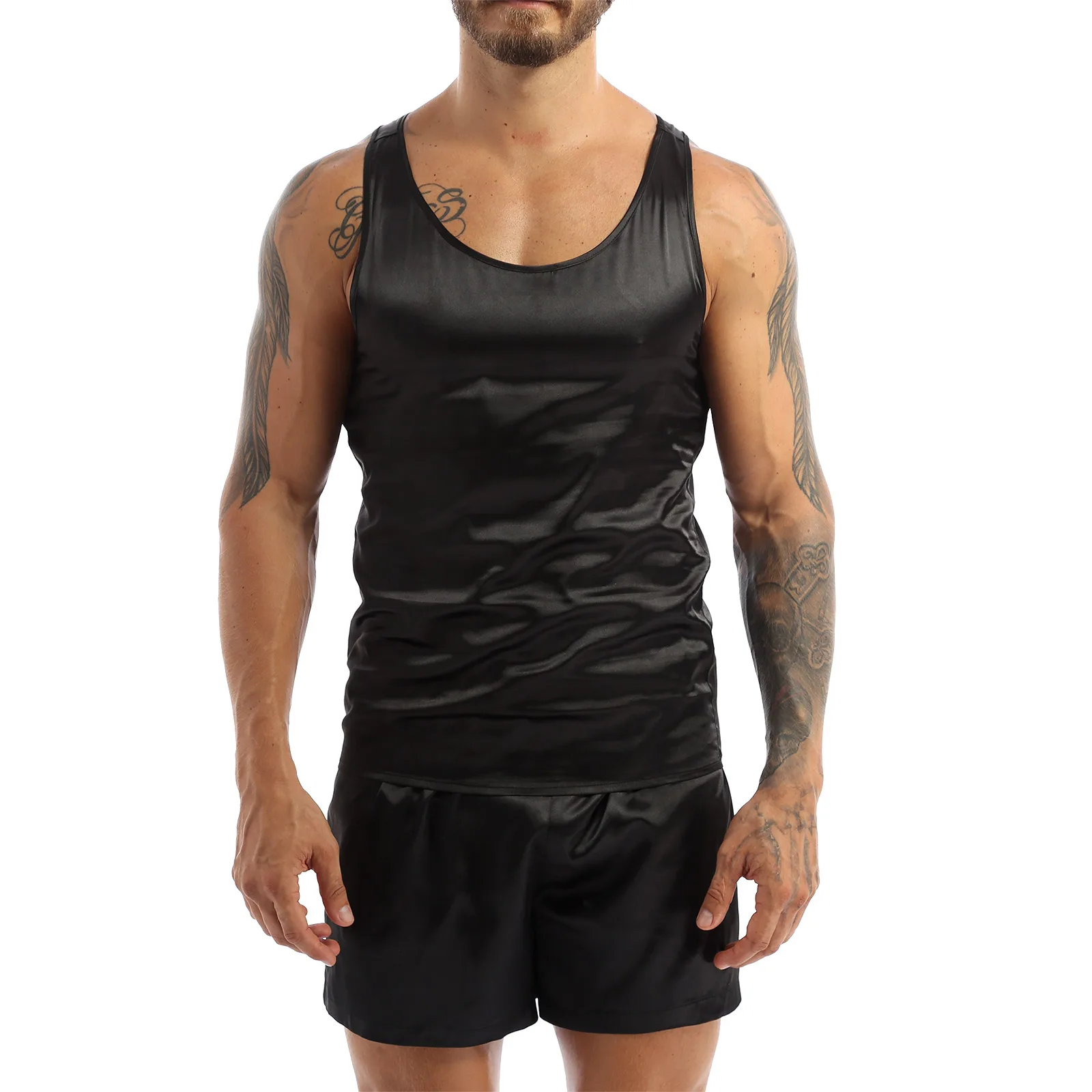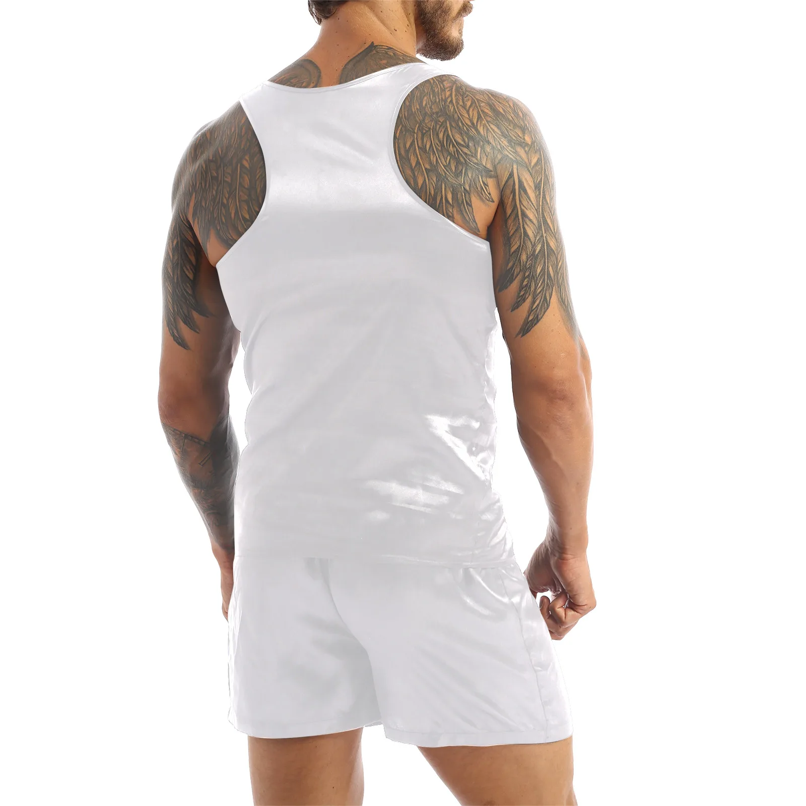Мужская атласная пижама, ночное белье, майка без рукавов с шортами, одежда для сна, пижамные комплекты, Ночная одежда, летняя ночная рубашка, одежда для отдыха