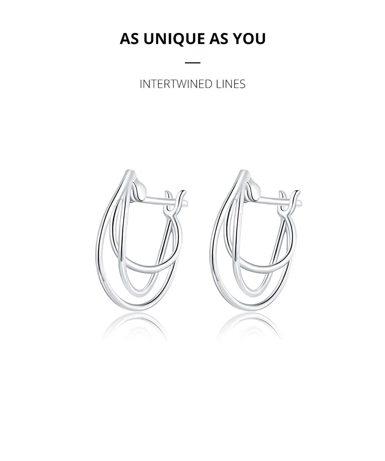 Серьги-кольца женские из серебра 925 пробы, с переплетенными линиями