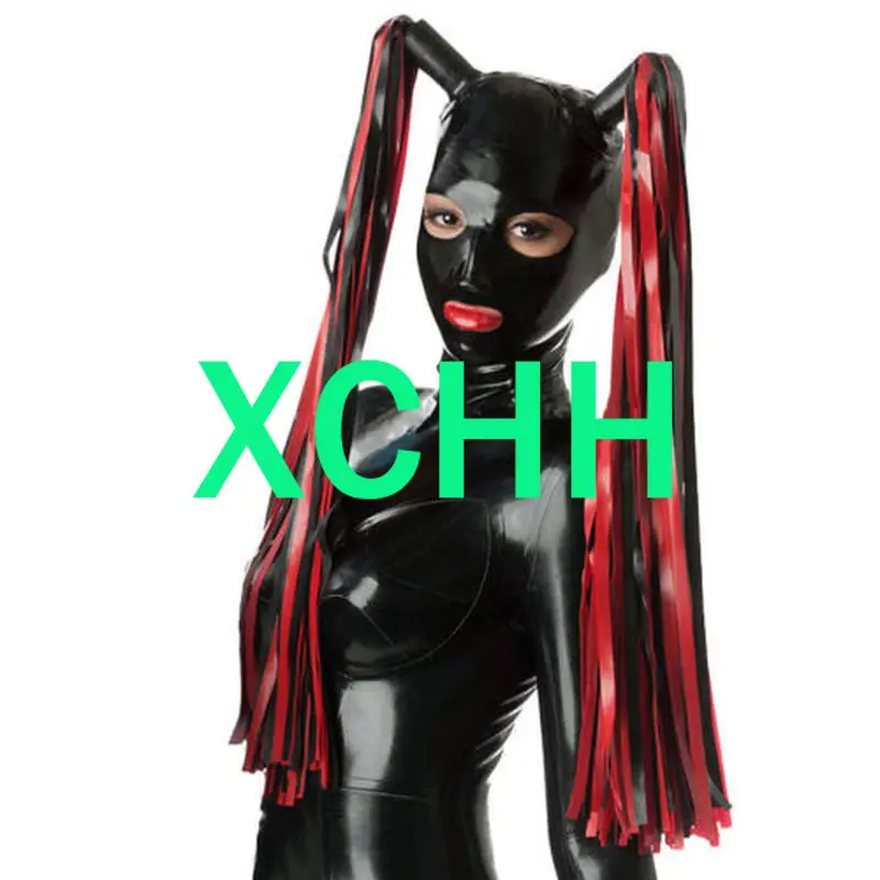 Женская маска-капюшон из 100% натурального латекса, с резиновыми париками