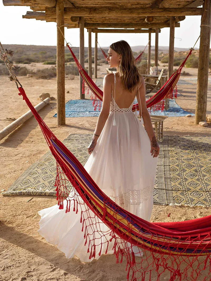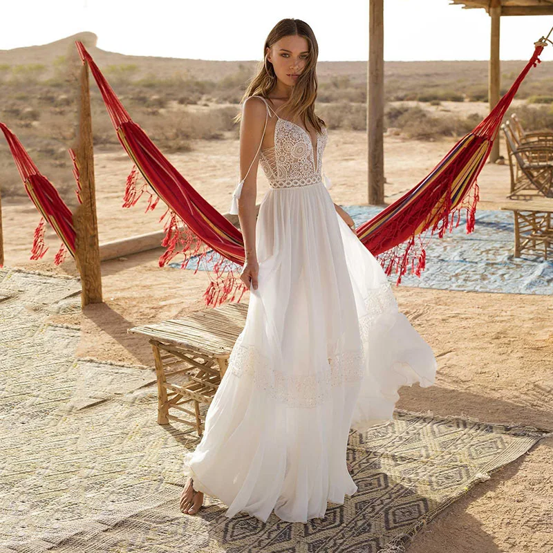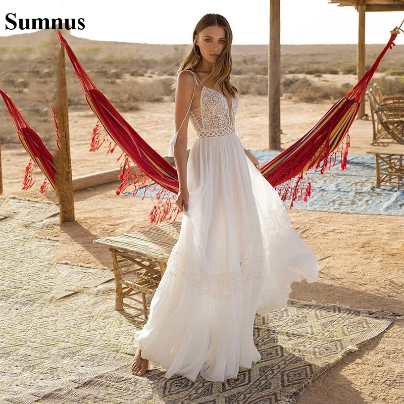 Летние богемные Свадебные платья 2020, сексуальное пляжное свадебное платье с открытой спиной и бретельками, шифоновые Свадебные платья размера плюс