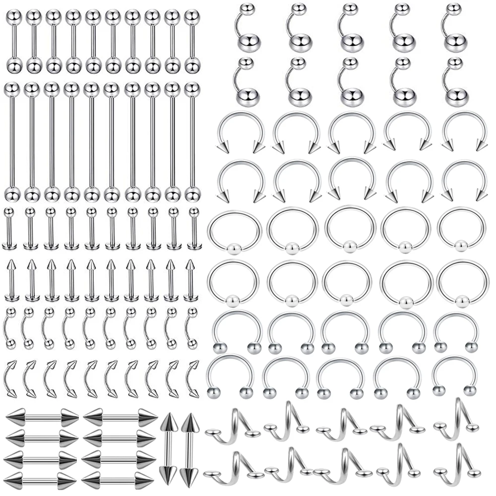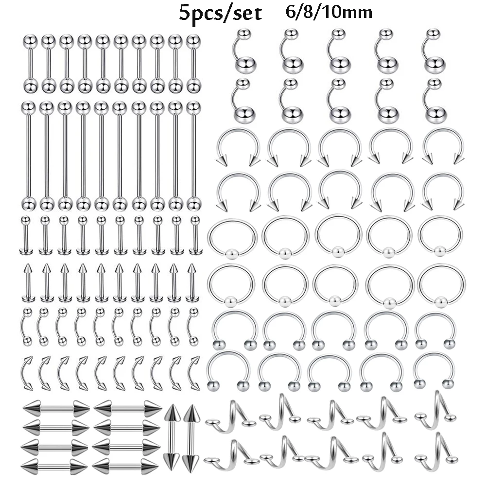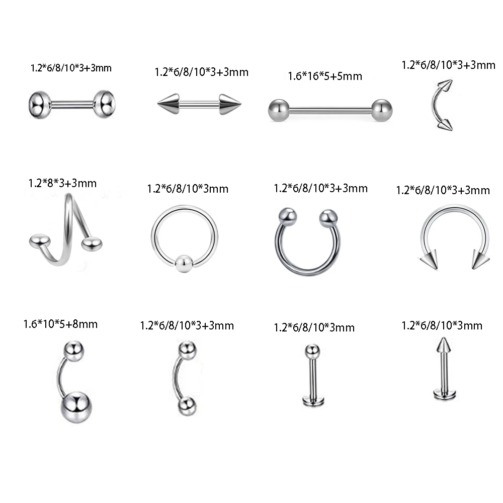 Размер: для носа, губ, ушей, бровей 1,2*6/8/10*3 мм живот 1,6*10*5/8 мм
