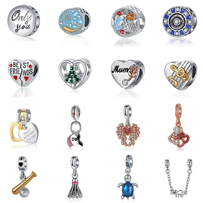 Бусины-подвески для браслетов и браслетов Пандоры, из сплава, с изображением слона, Листьев, музыкальных цветов, 45 стилей