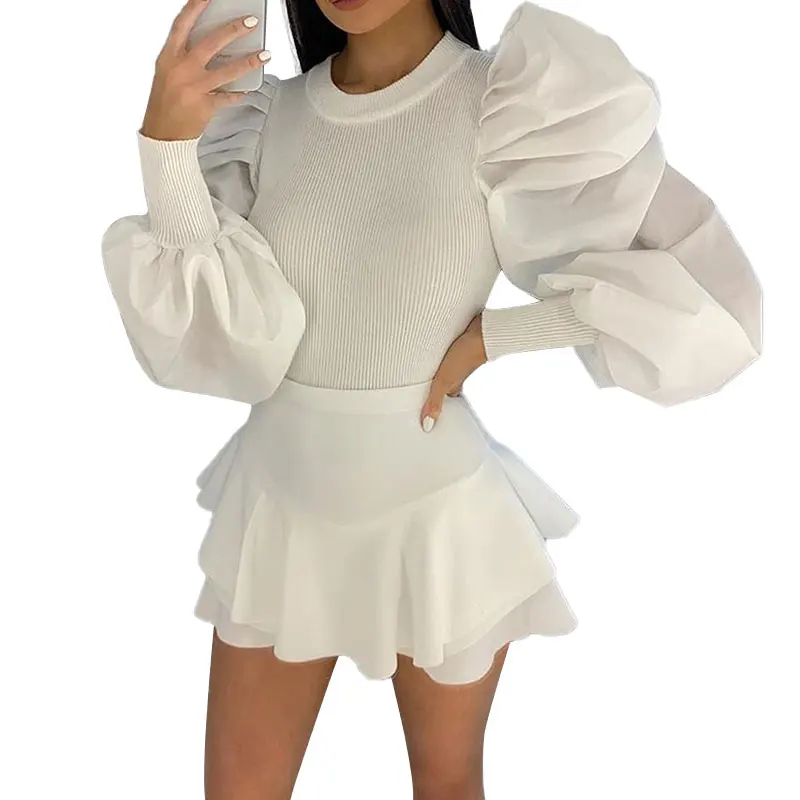 Женский сетчатый пуловер Fahsion, Повседневный, с пышными рукавами,...