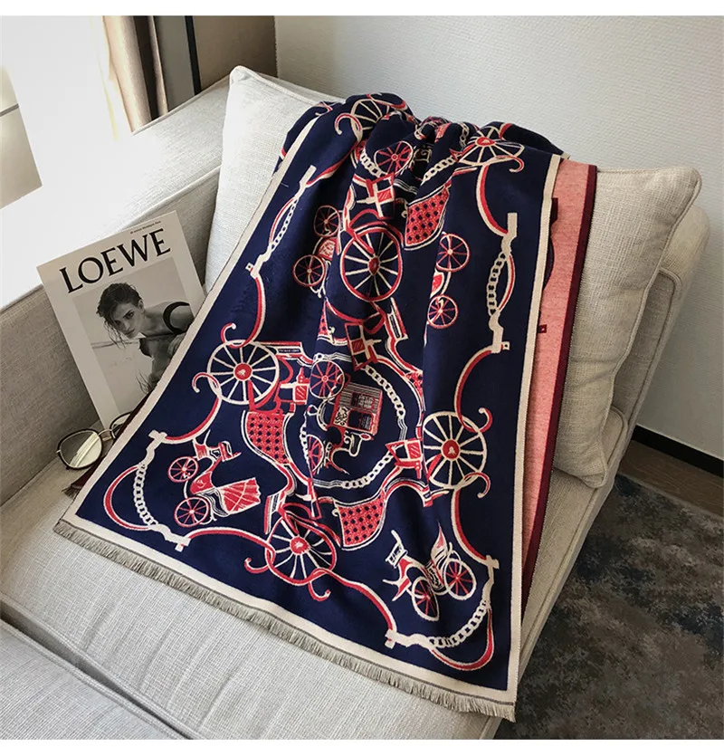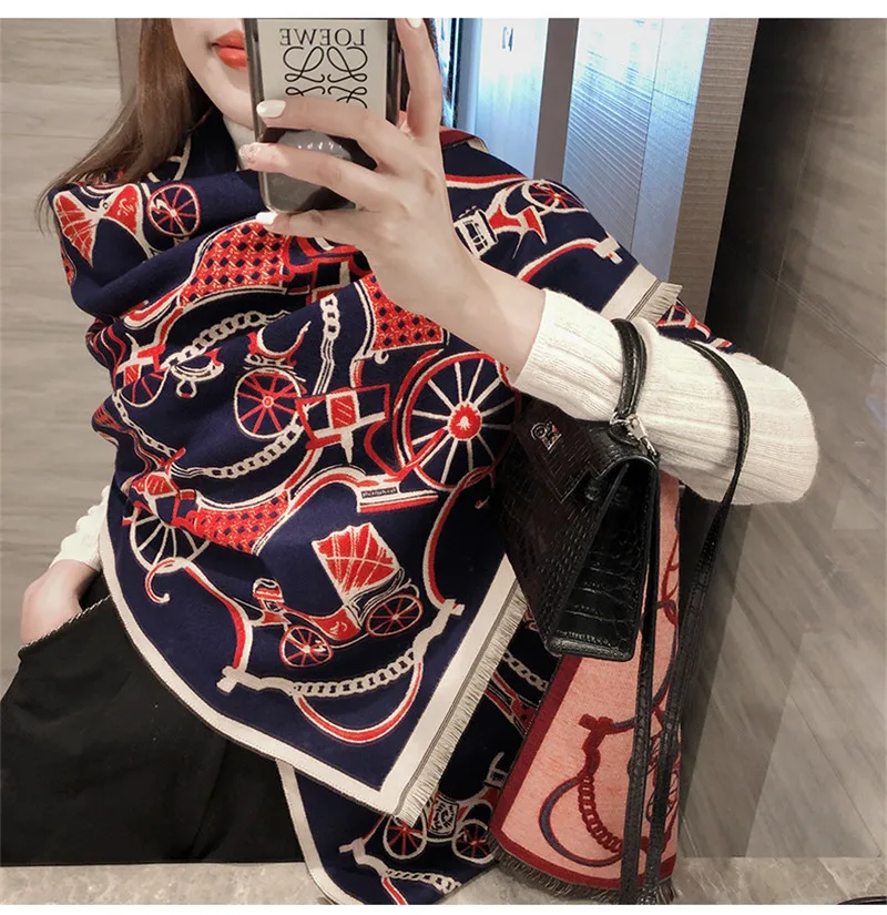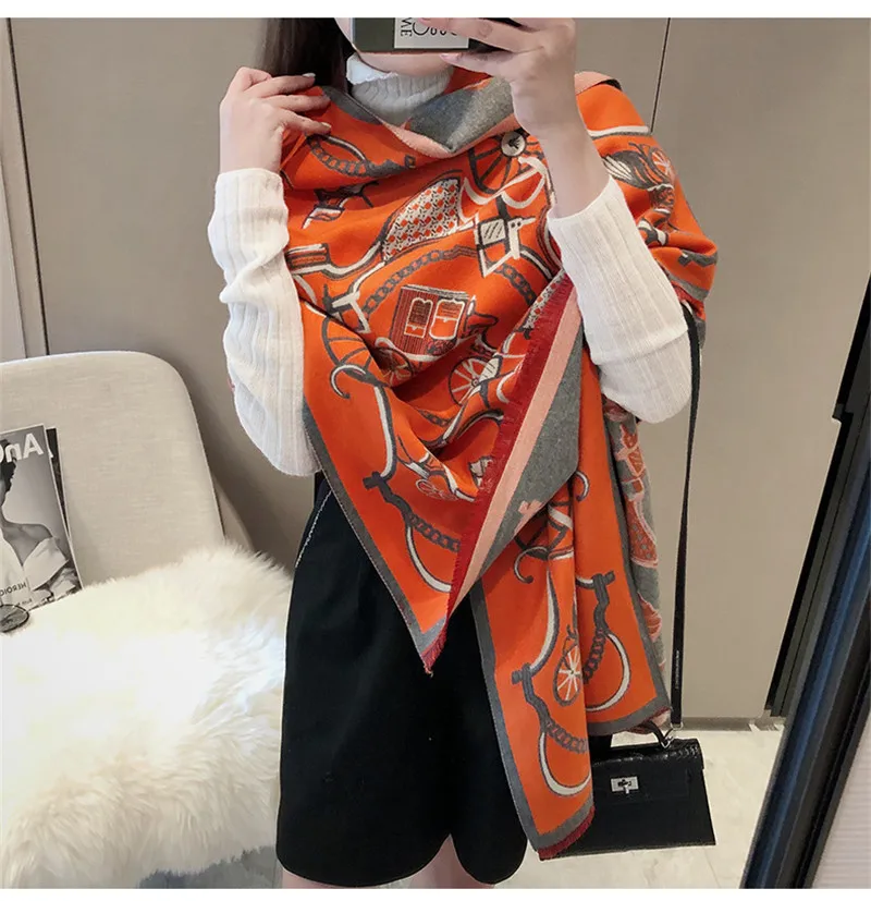 Роскошный брендовый зимний шарф, женские мягкие кашемировые теплые шарфы из пашмины, шарфы с принтом в виде каретки, толстые шали, палантины, палантины
