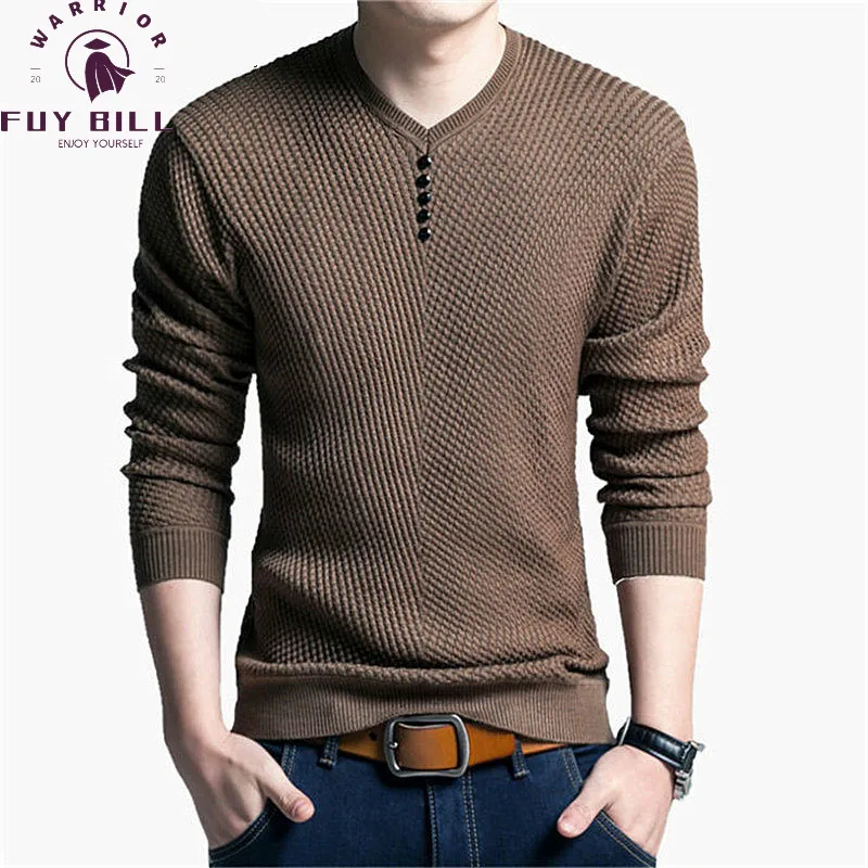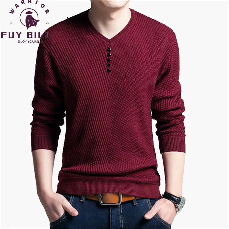 Свитер Fuy Bill мужской повседневный, пуловер с V-образным вырезом, рубашка, приталенный силуэт, мужские свитеры с длинным рукавом, вязаный хлопковый топ