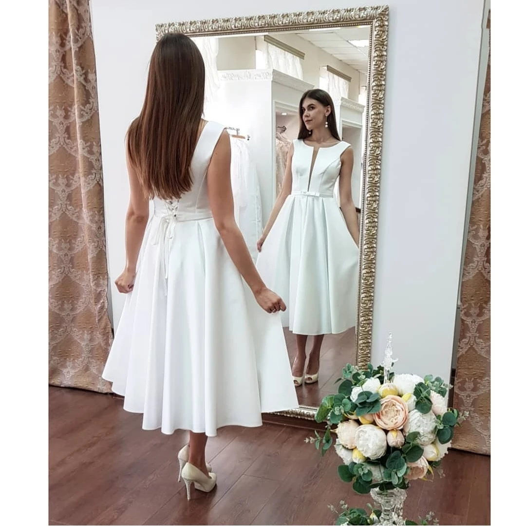 Короткие свадебные платья с вырезом лодочкой 2021 белое свадебное п...