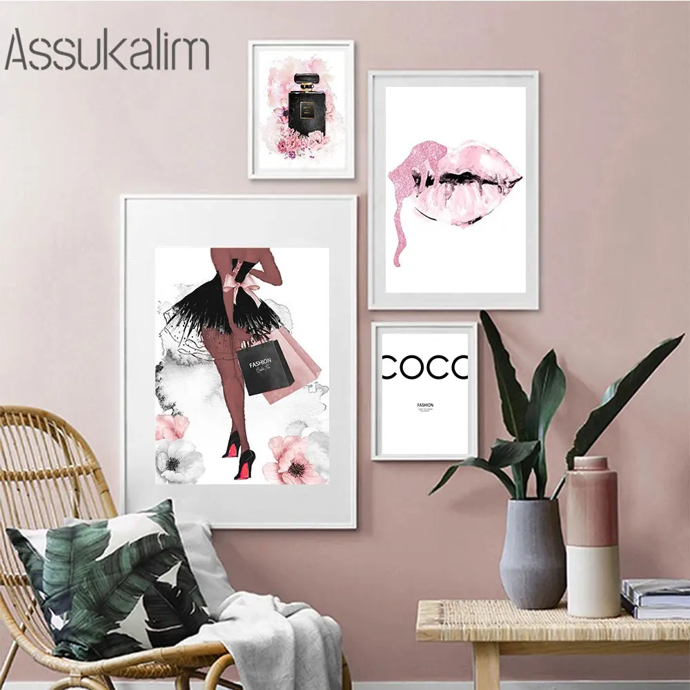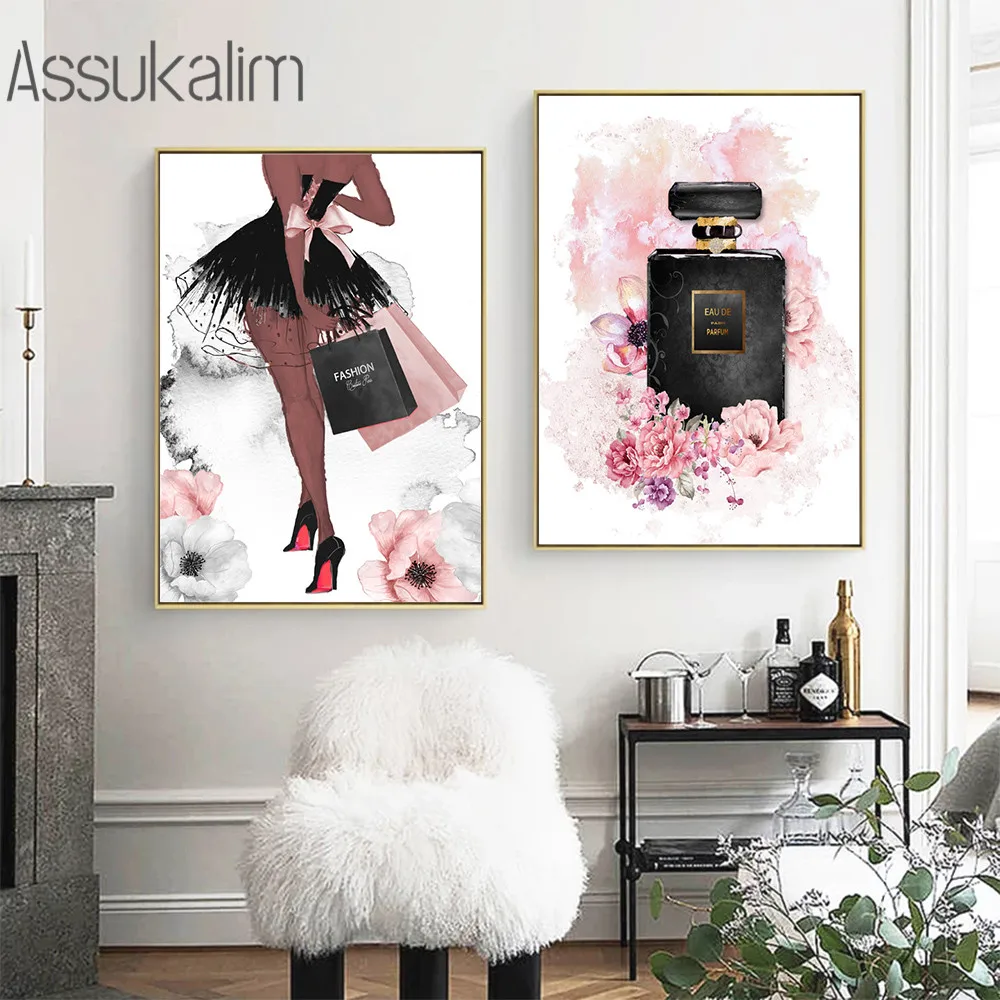 Модный постер с принтом флакона духов, Картина на холсте для макияж...