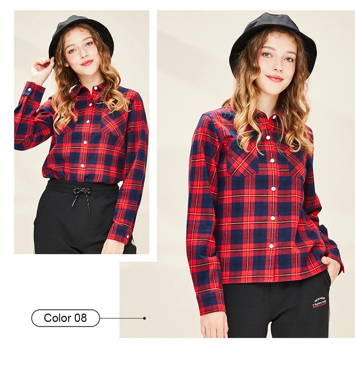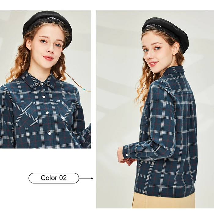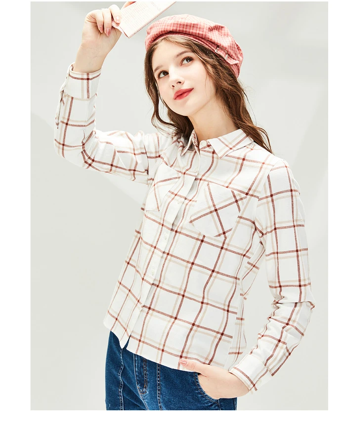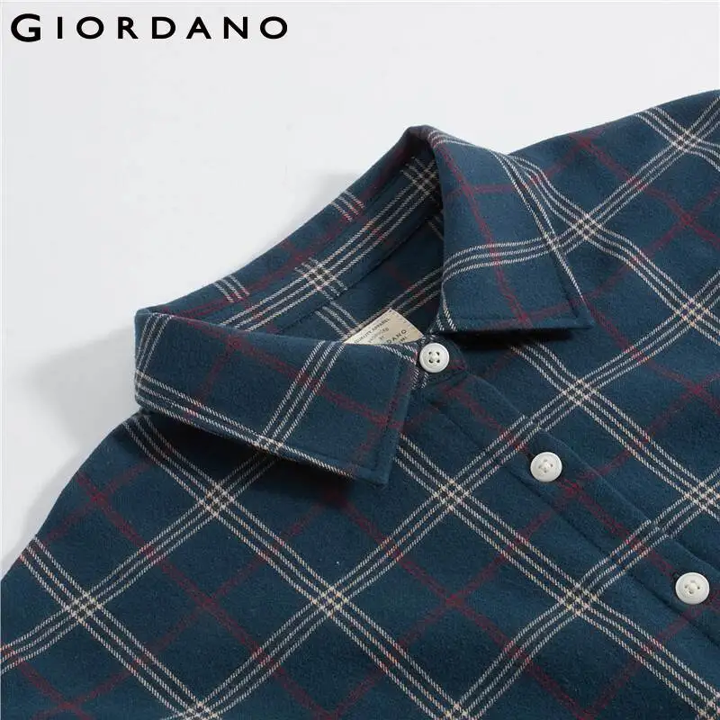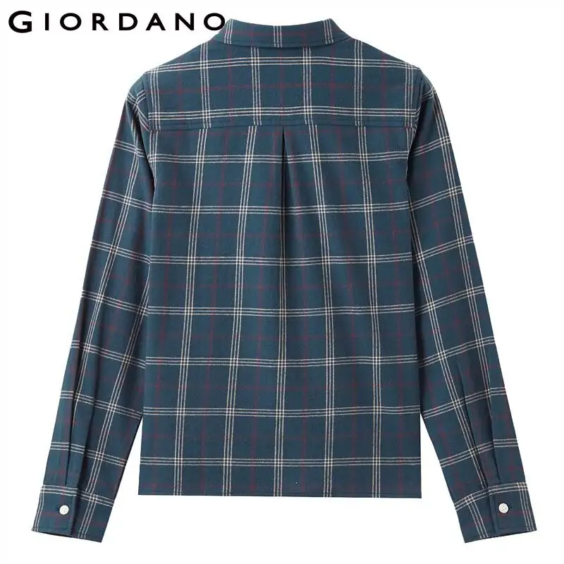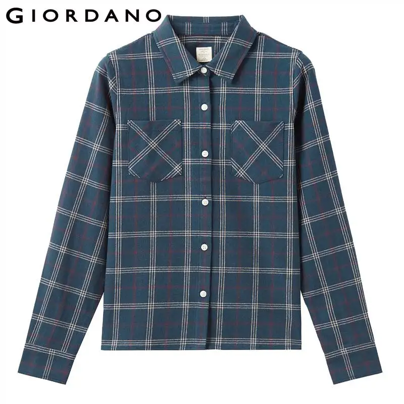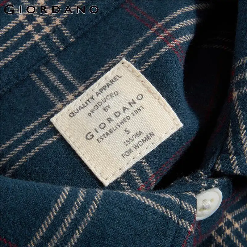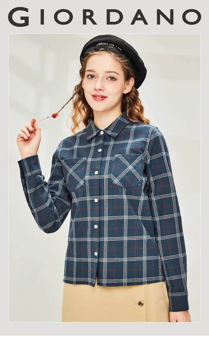 Рубашка Giordano Женская фланелевая в клетку, блузка с отложным воротником и косыми карманами, Повседневная Мягкая блузка с длинным рукавом, 05340886