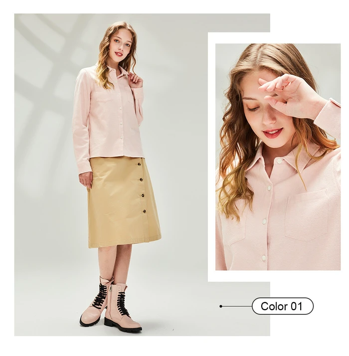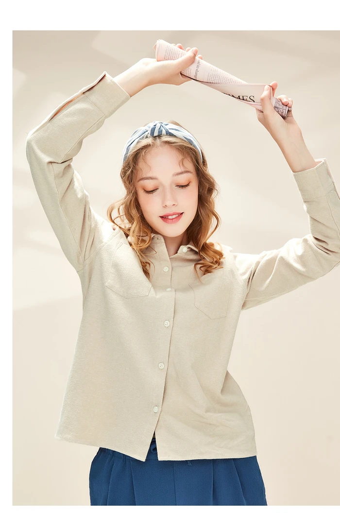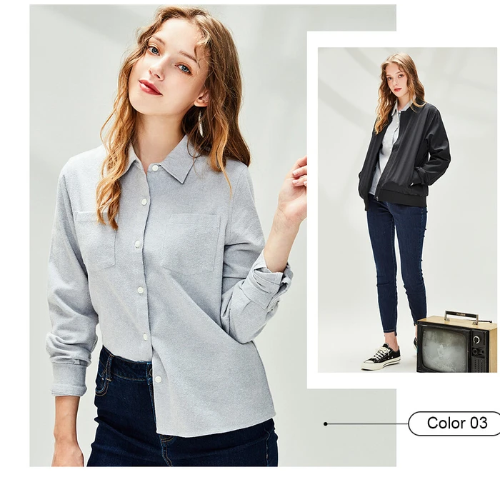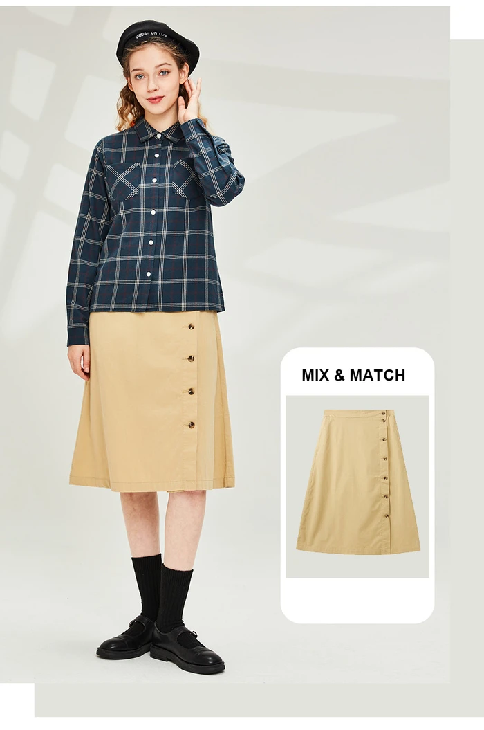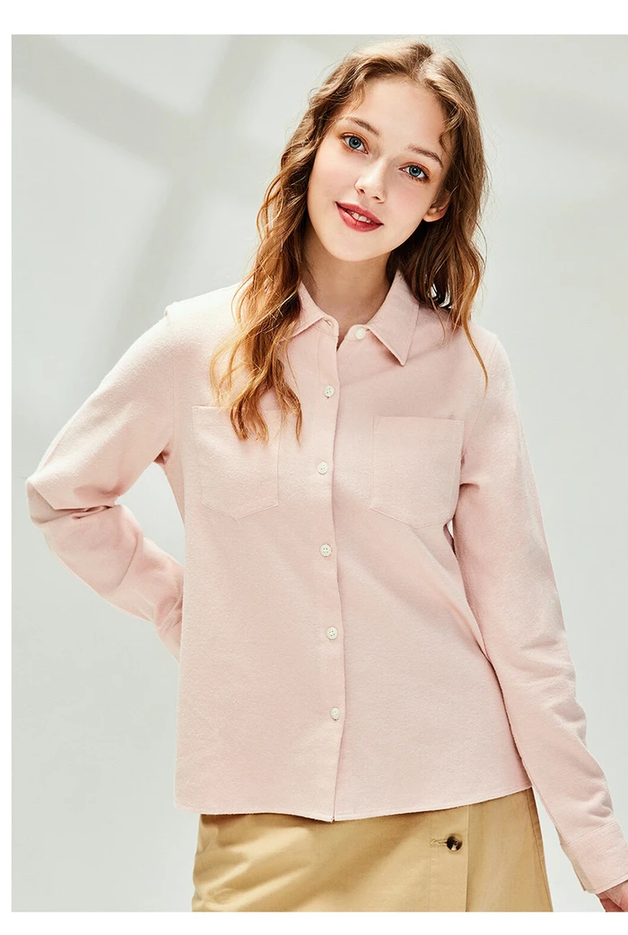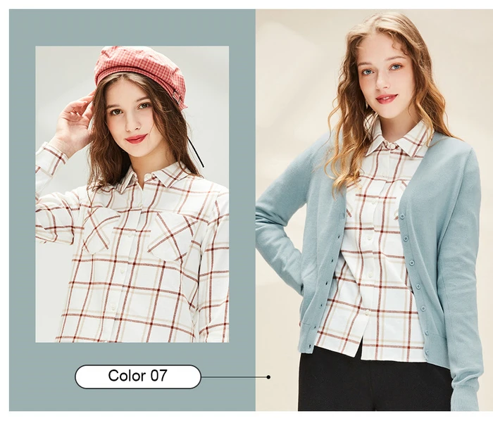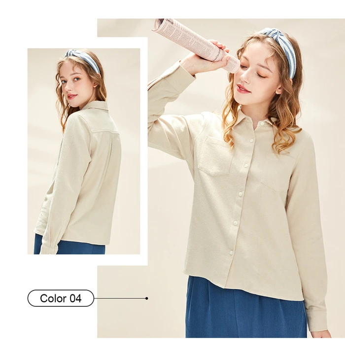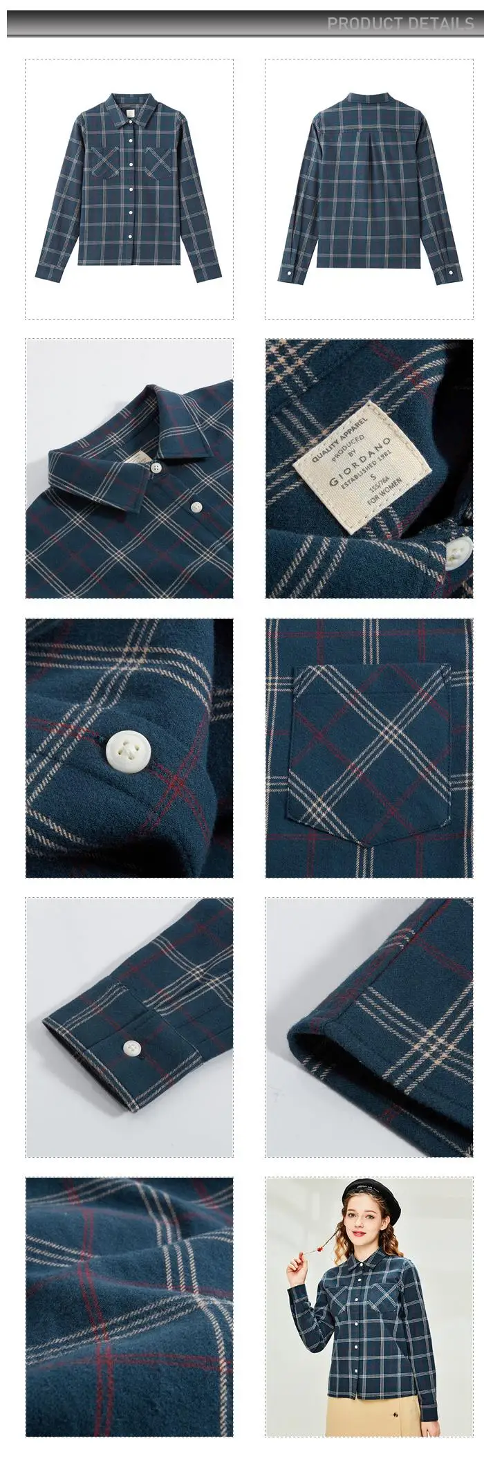 Рубашка Giordano Женская фланелевая в клетку, блузка с отложным воротником и косыми карманами, Повседневная Мягкая блузка с длинным рукавом, 05340886