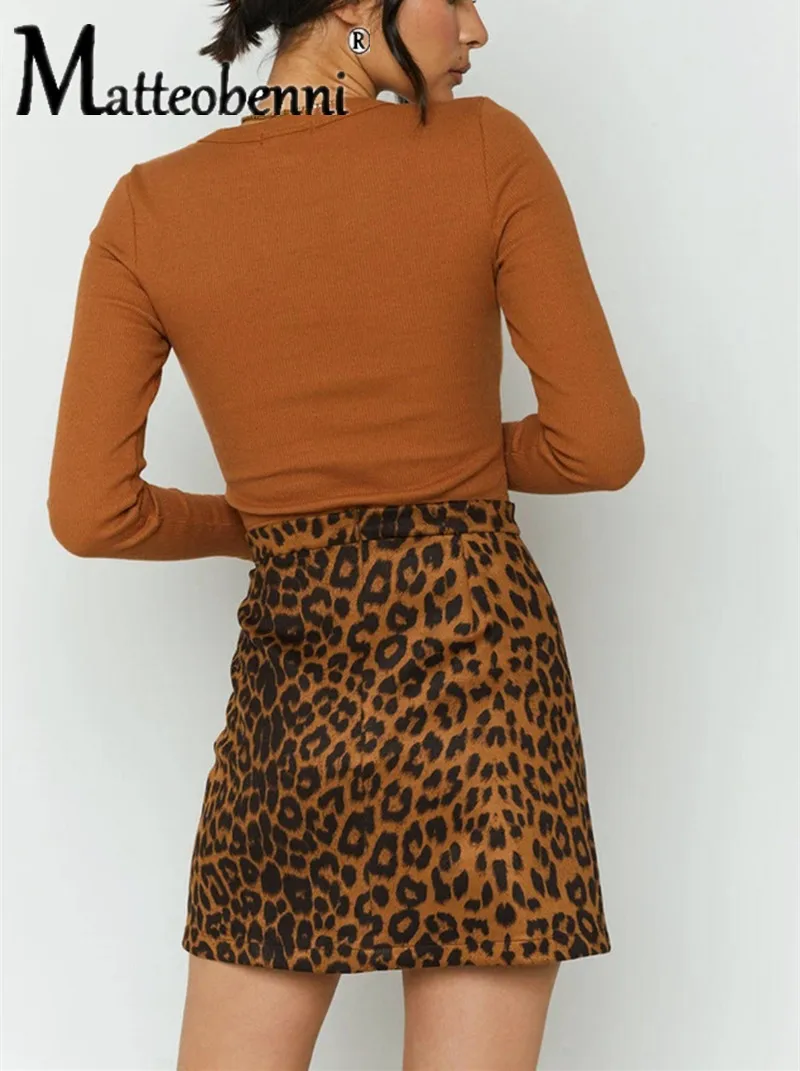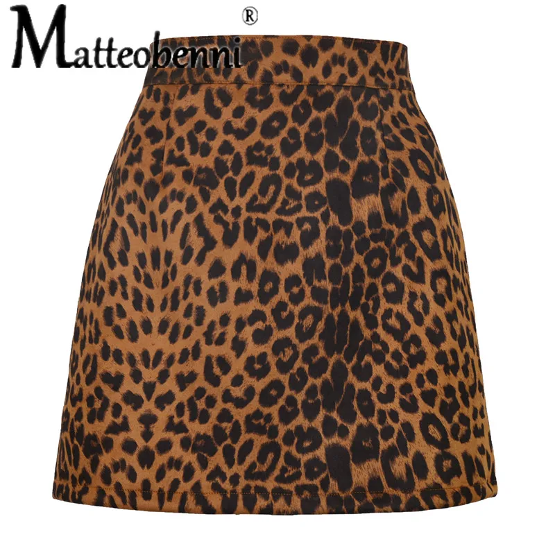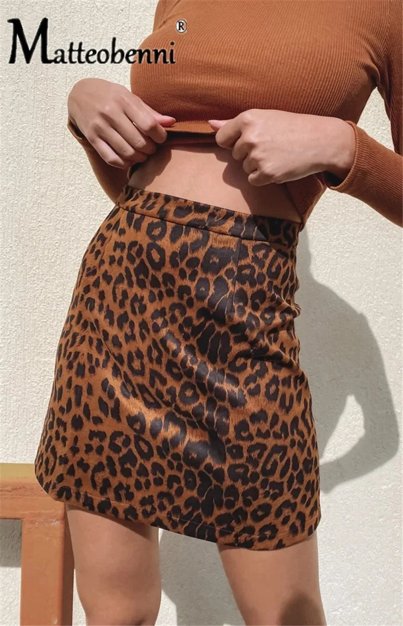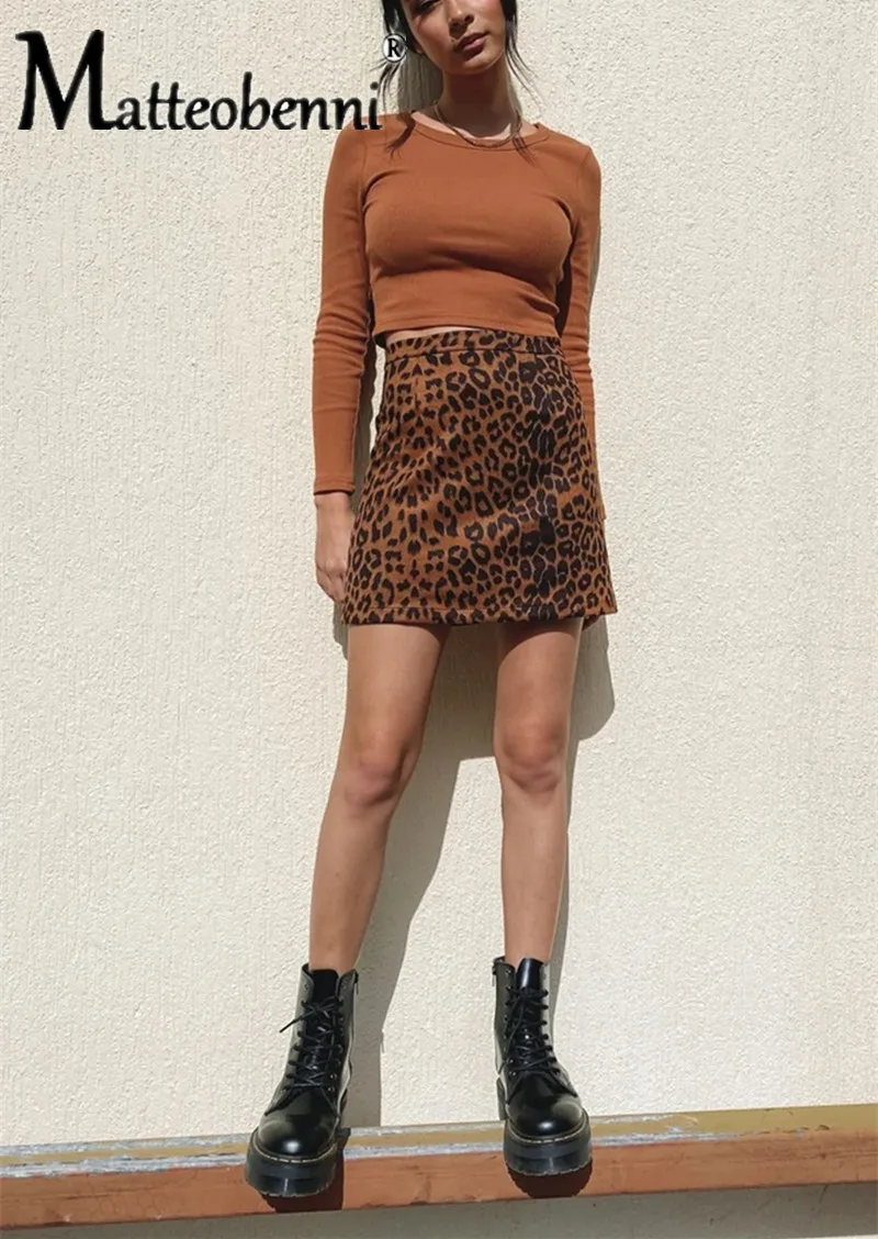 Юбка-трапеция Женская замшевая с леопардовым принтом, на молнии, с завышенной талией