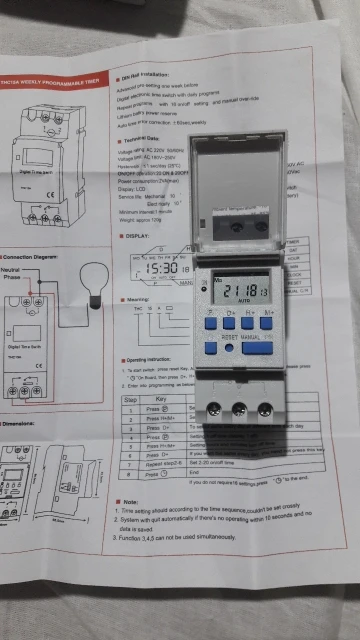 Посылка прибыла неповрежденной. Доставка занимает 43 дня в Беларусь (в пределах Китая было несколько возвратов). Время работает должным образом. Единственным нюансом является кнопка выбора ручного режима. Вы должны нажать его не в центре, а на левую кромку, в противном случае он не работает (проверено на обоих таймерах).