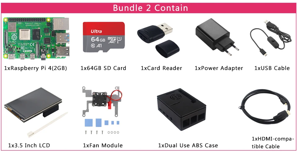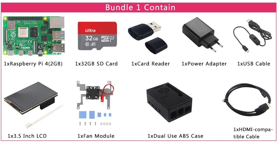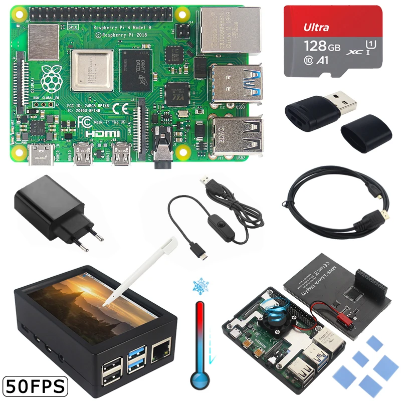 Raspberry Pi 4 Model B, 8 ГБ, 4 Гб, 2 Гб, сенсорный экран 50 кадров в секунду, чехол, вентилятор, радиаторы, адаптер питания, TF-карта 32, 64, 128 ГБ для Pi 4