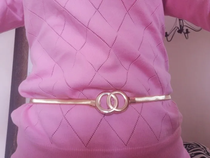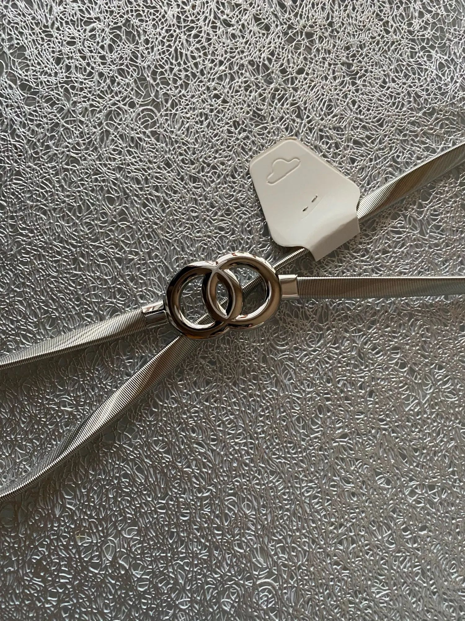 Ремень женский эластичный, с двумя кольцами, ЗолотойСеребряный